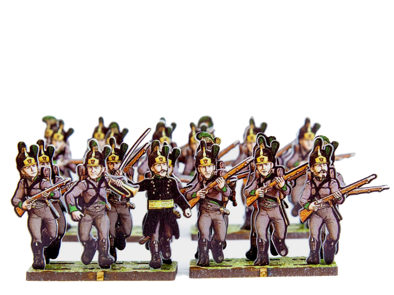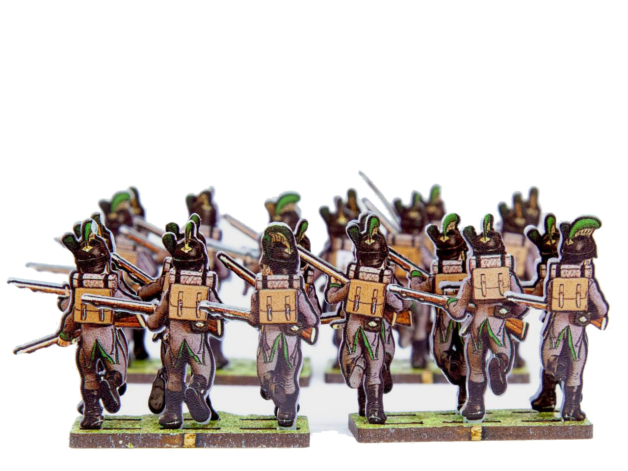 The Infanterie-Regiments Jägers Set is crafted on a 15x20 cm Plexiglass sprue and includes: