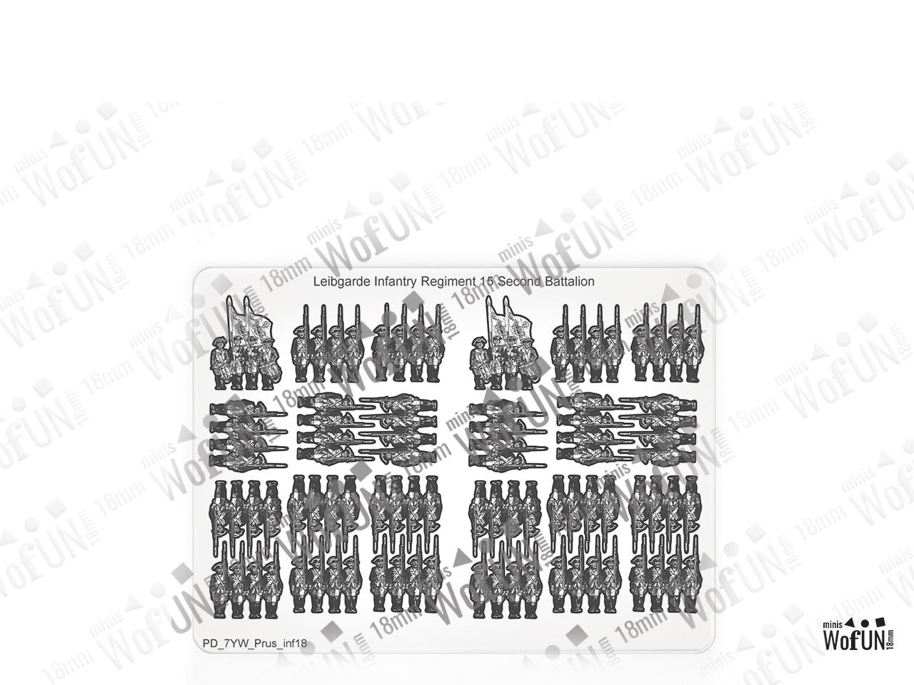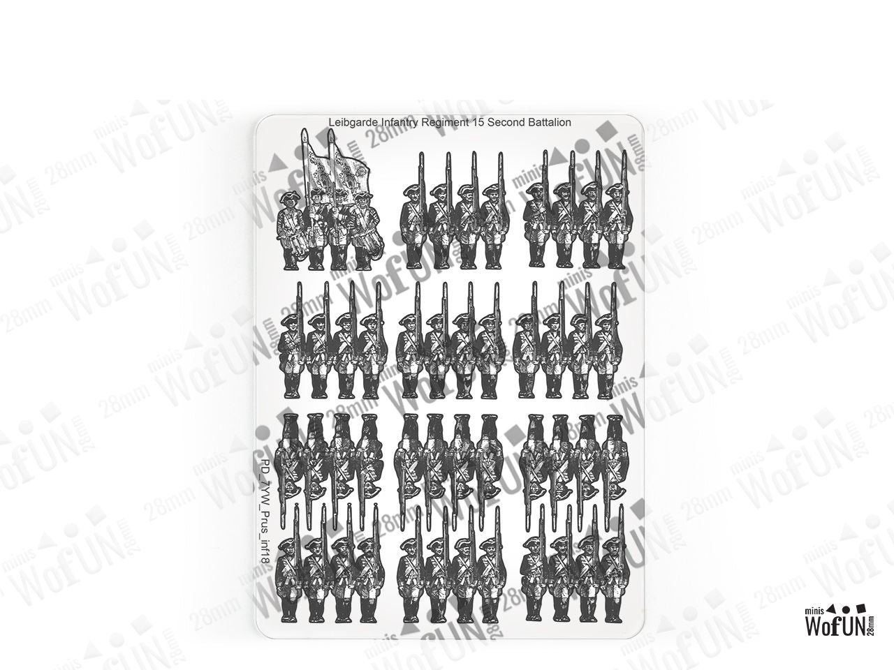 The Infantry Leibgarde Regiment 15 second Battalion Set is crafted on a 15x20 cm Plexiglass sprue and includes: