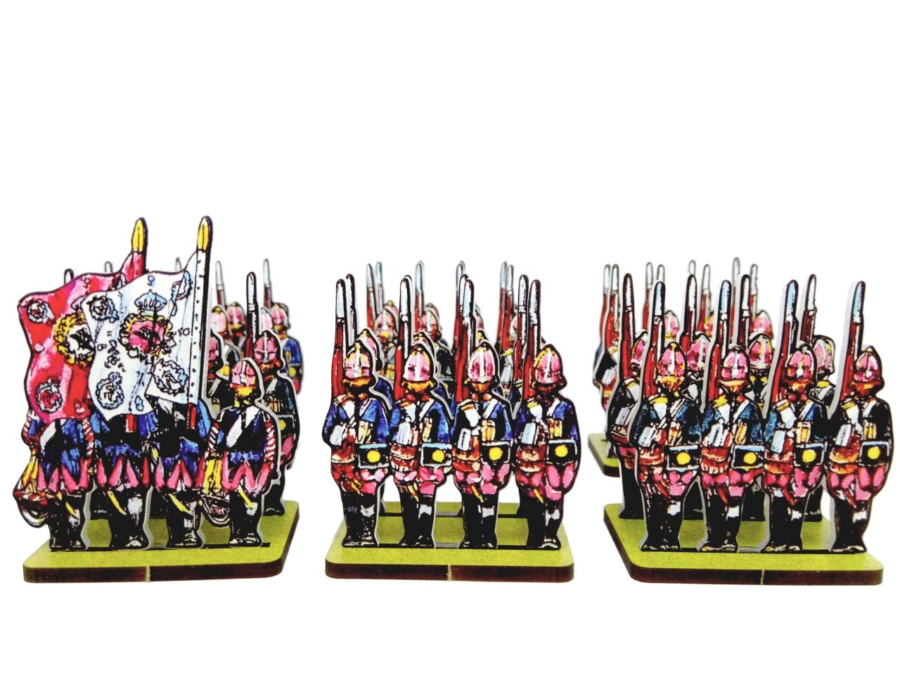 - An Infantry Base holds 2 strips of figurines, in 2 ranks (one behind the other).