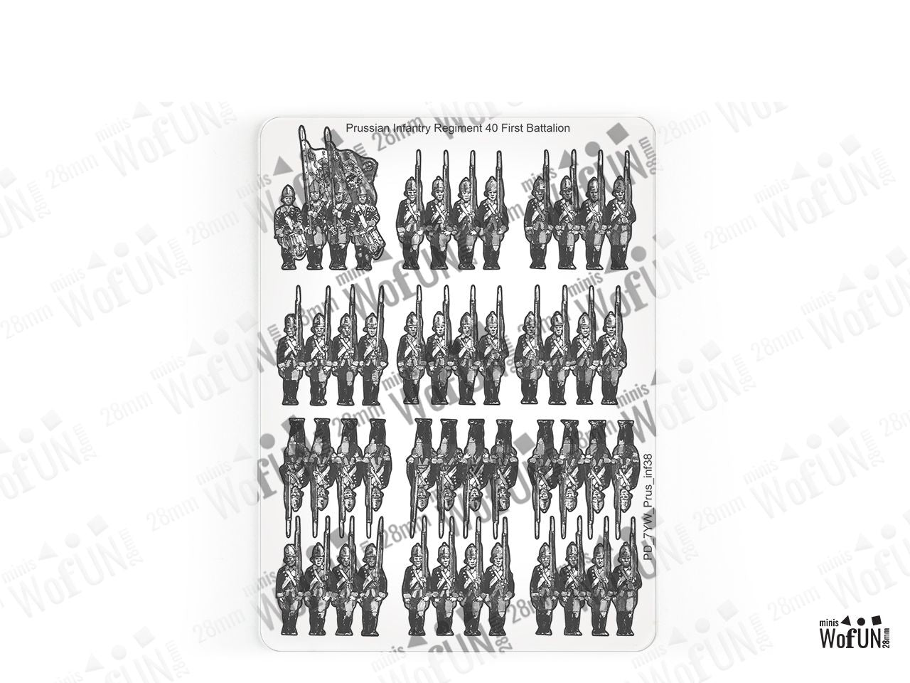 The Infantry Regiment 40 (Fusilier) First Battalion Set is crafted on a 15x20 cm Plexiglass sprue and includes: