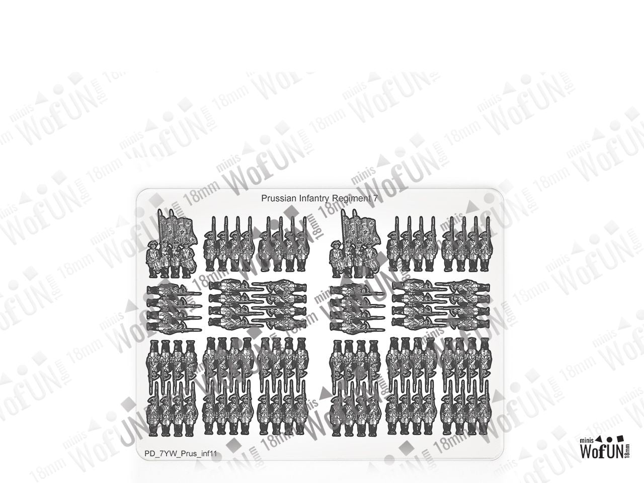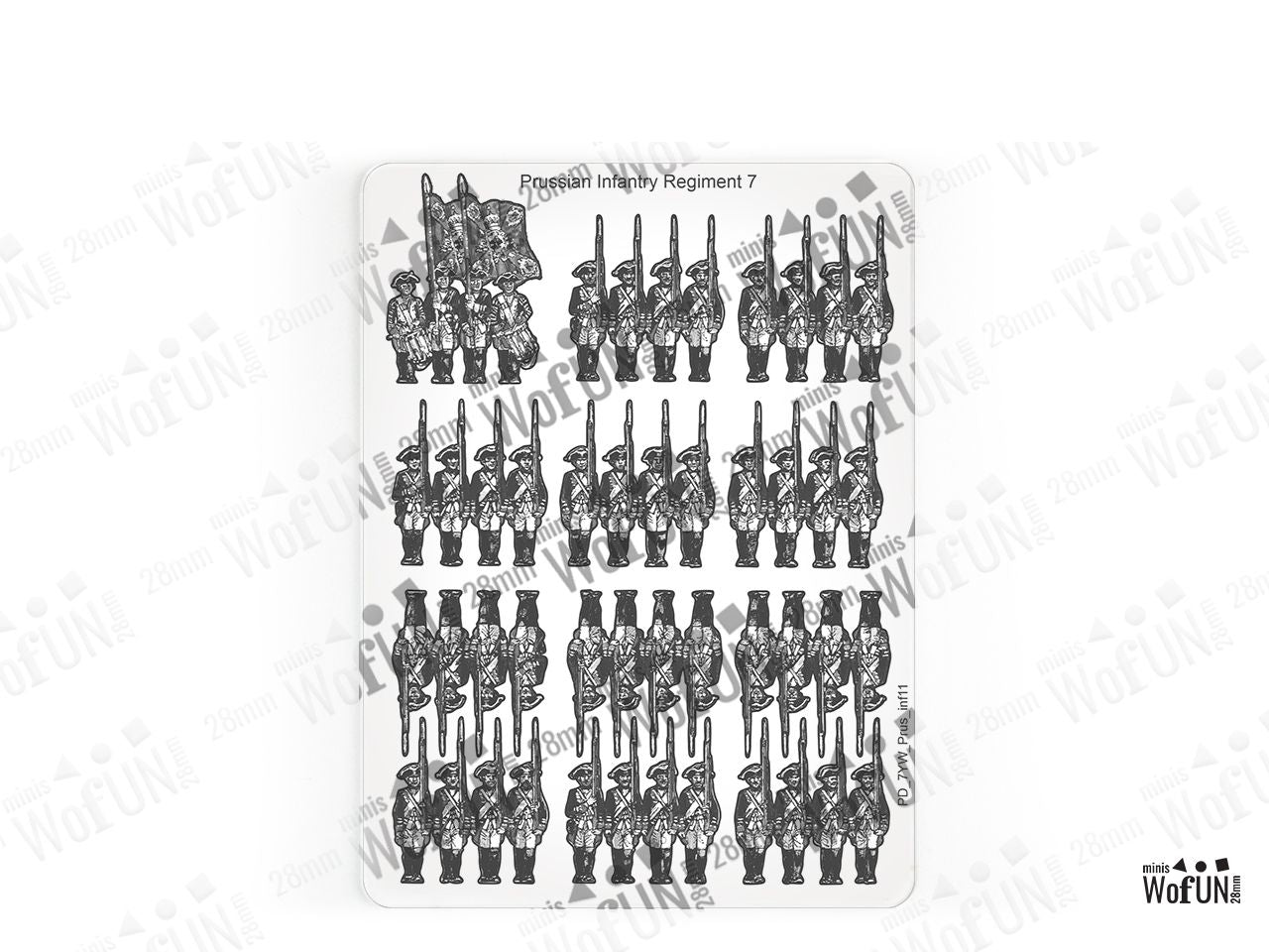 The Infantry Regiment 7 First Battalion Set is crafted on a 15x20 cm Plexiglass sprue and includes: