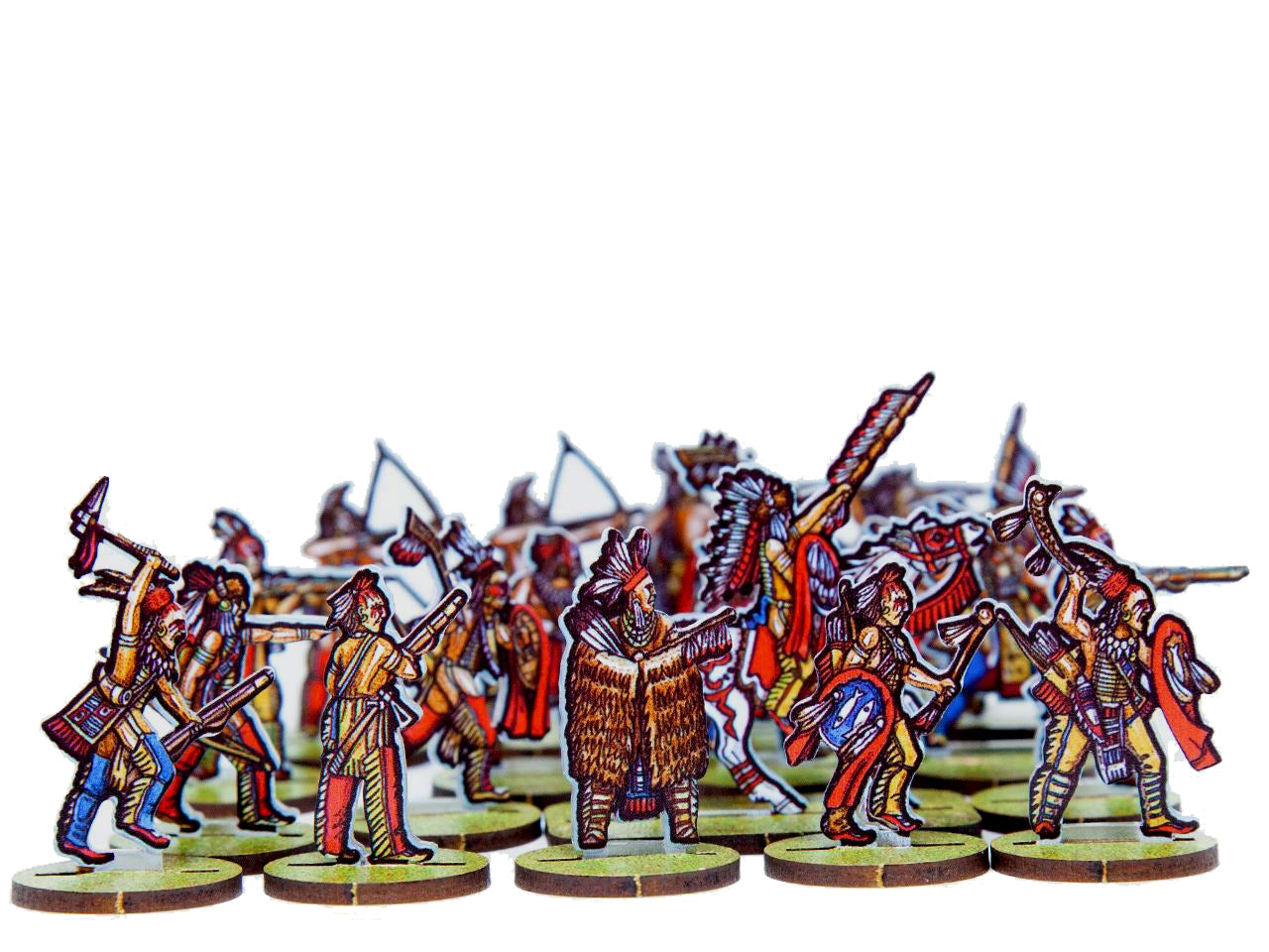 The Iroquois Infantry Set is crafted on a 15x20 cm Plexiglass sprue and includes:
