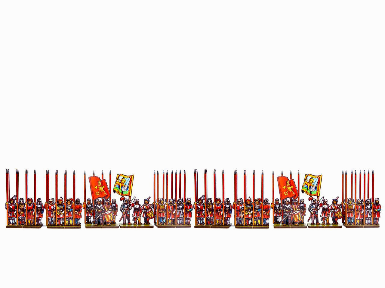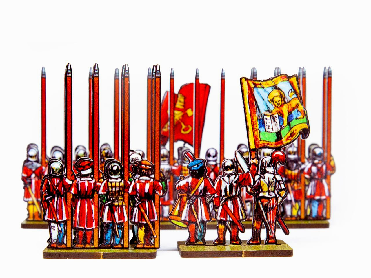 The Italian Pikemen Set is crafted on a 15x20 cm Plexiglass sprue and includes: