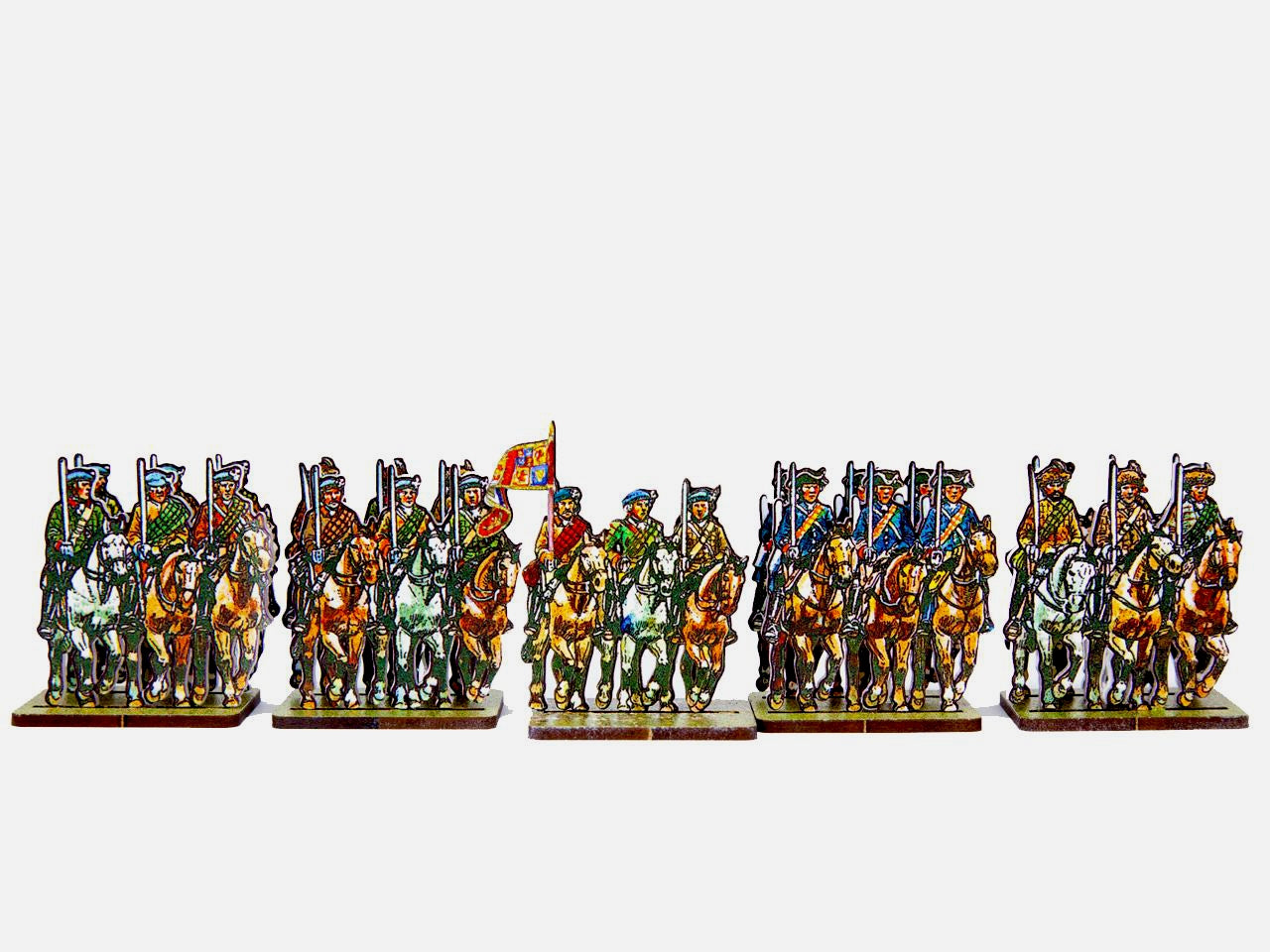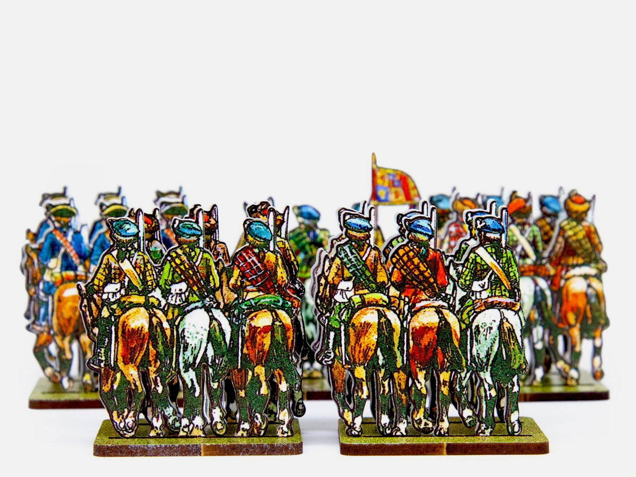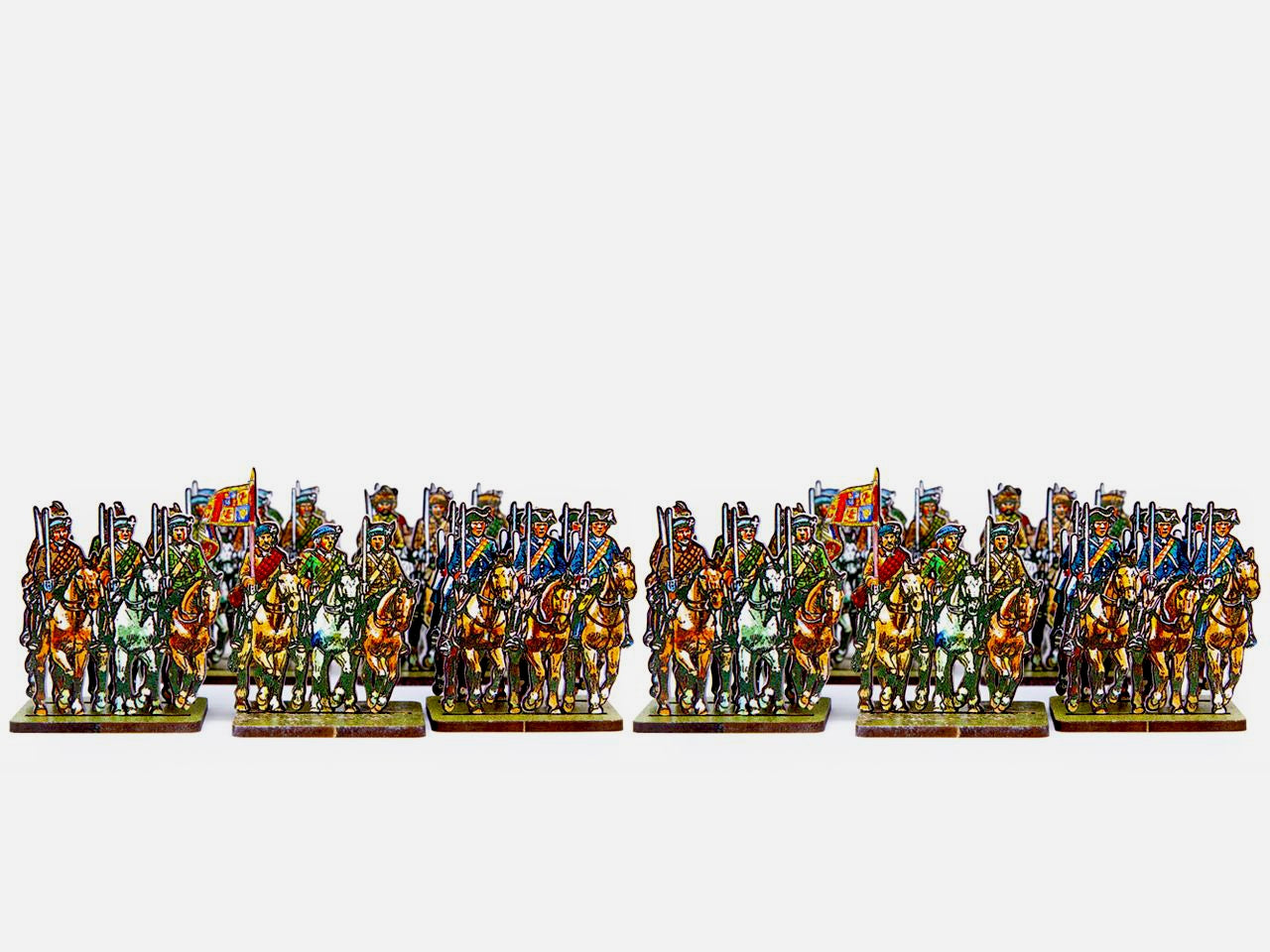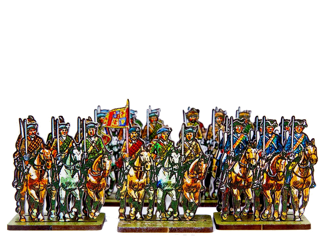The Jacobite Cavalry Set is crafted on a 15x20 cm Plexiglass sprue and includes:
