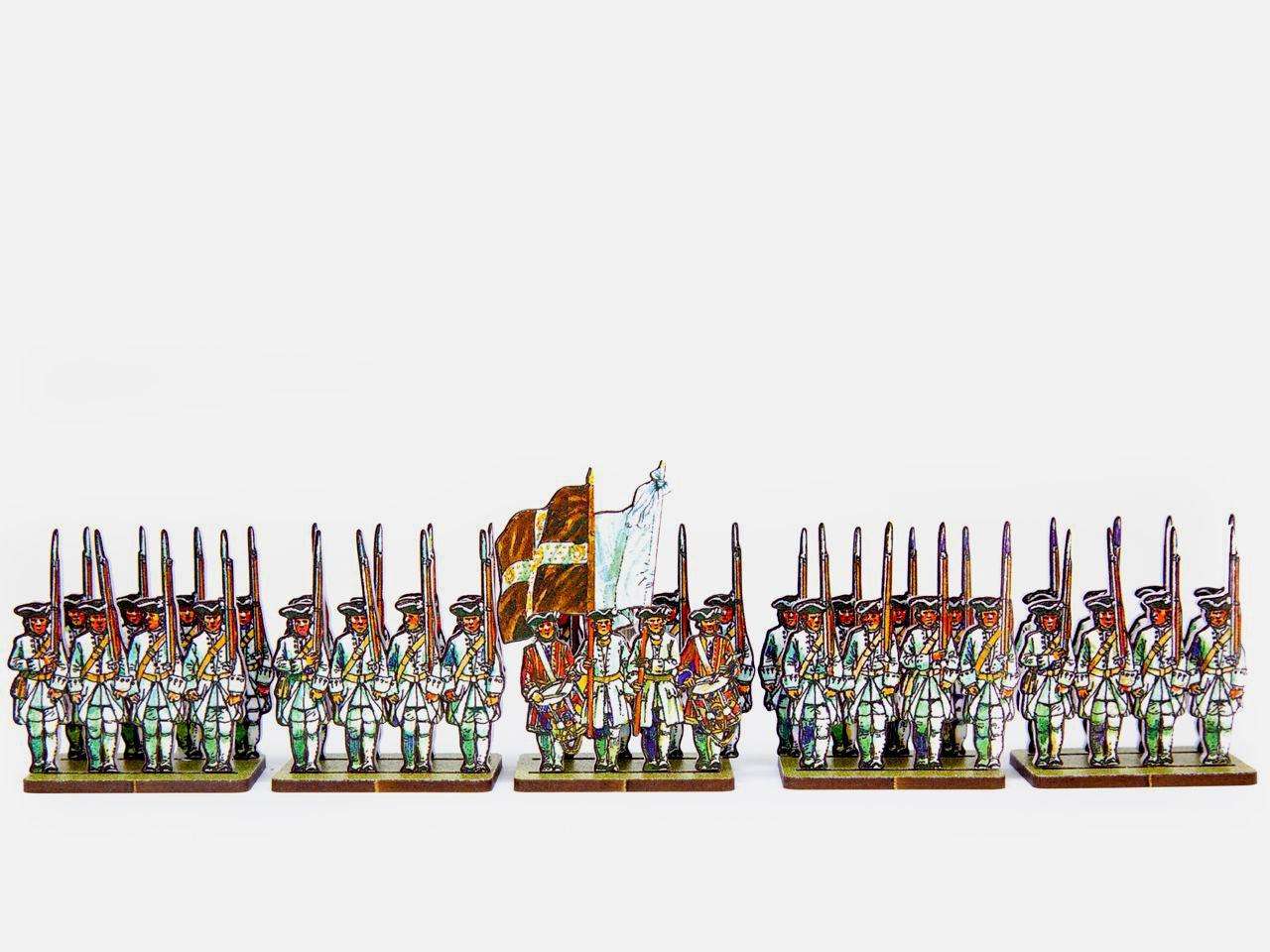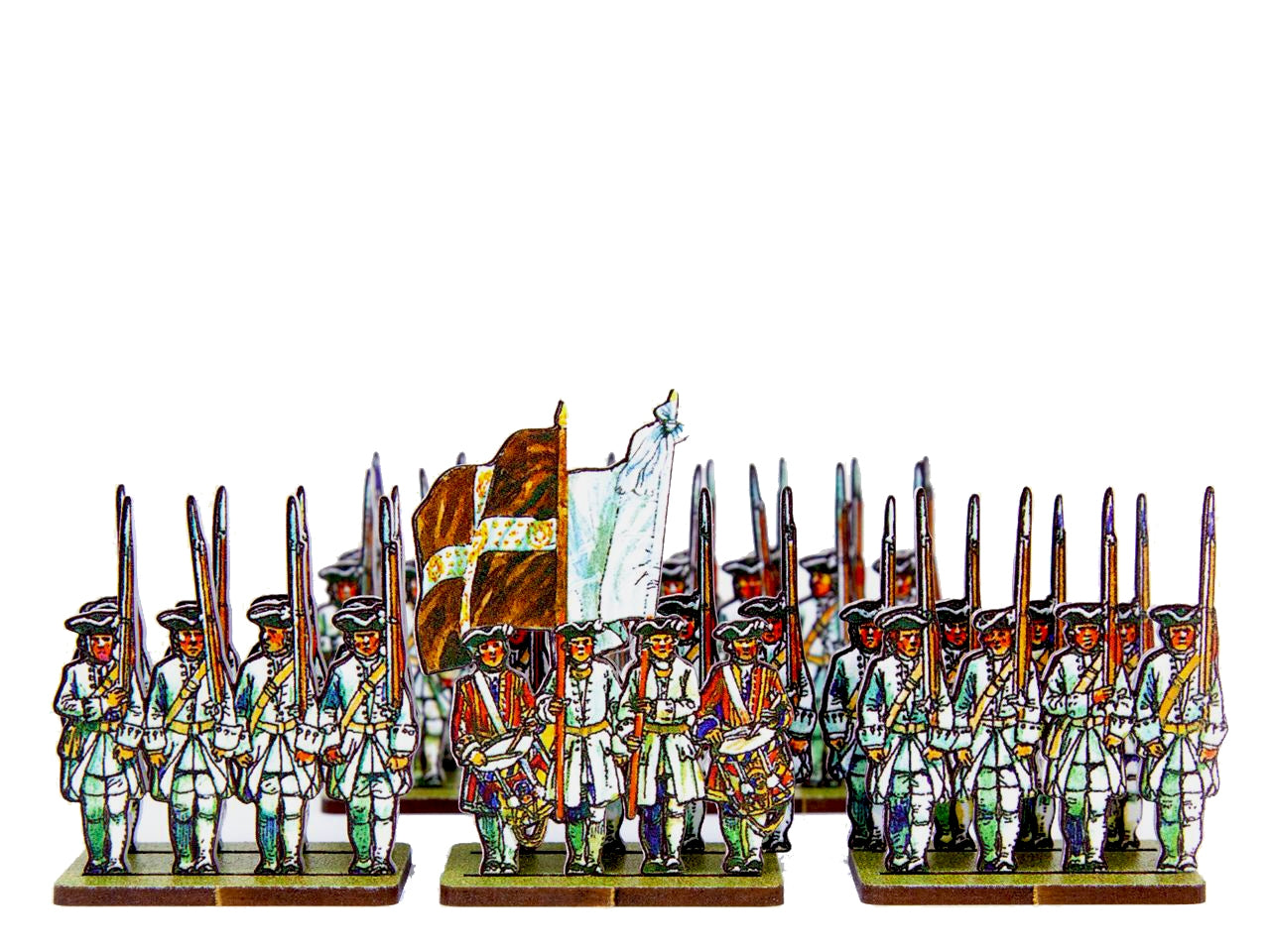 The Jacobite French Regular Infantry Set is crafted on a 15x20 cm Plexiglass sprue and includes: