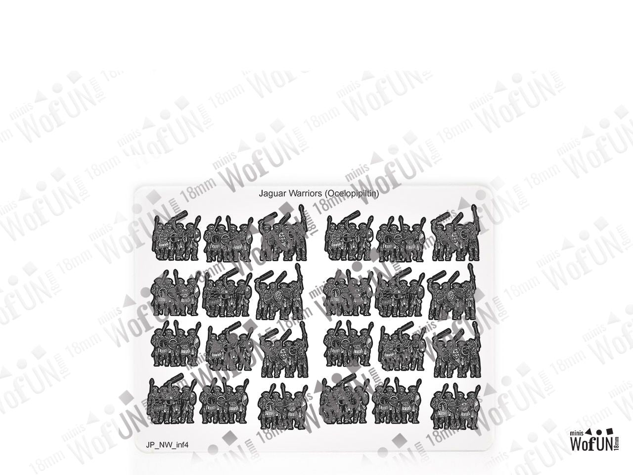 The Jaguar Warriors (Ocelopipiltin) Set is crafted on a 15x20 cm Plexiglass sprue and includes: