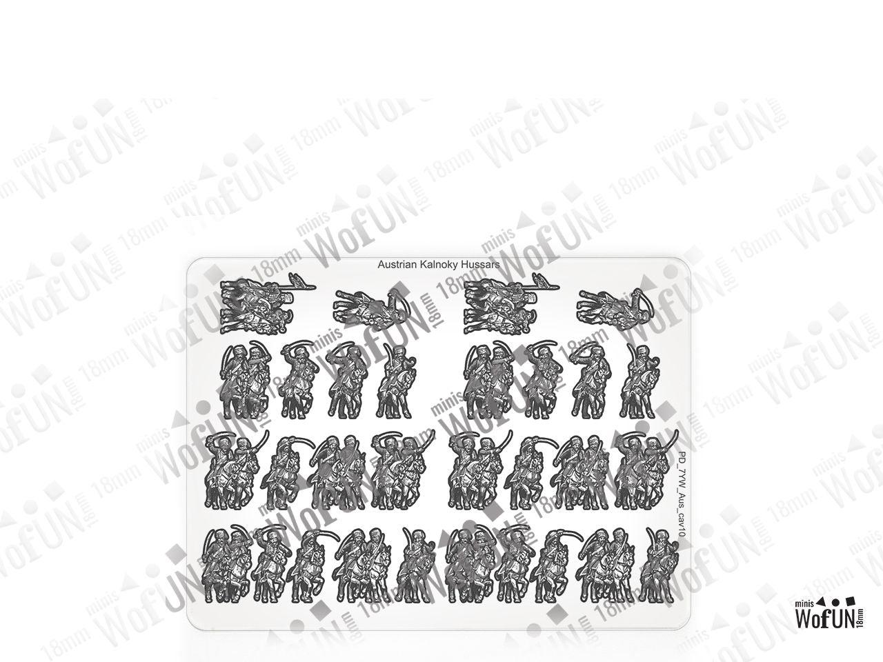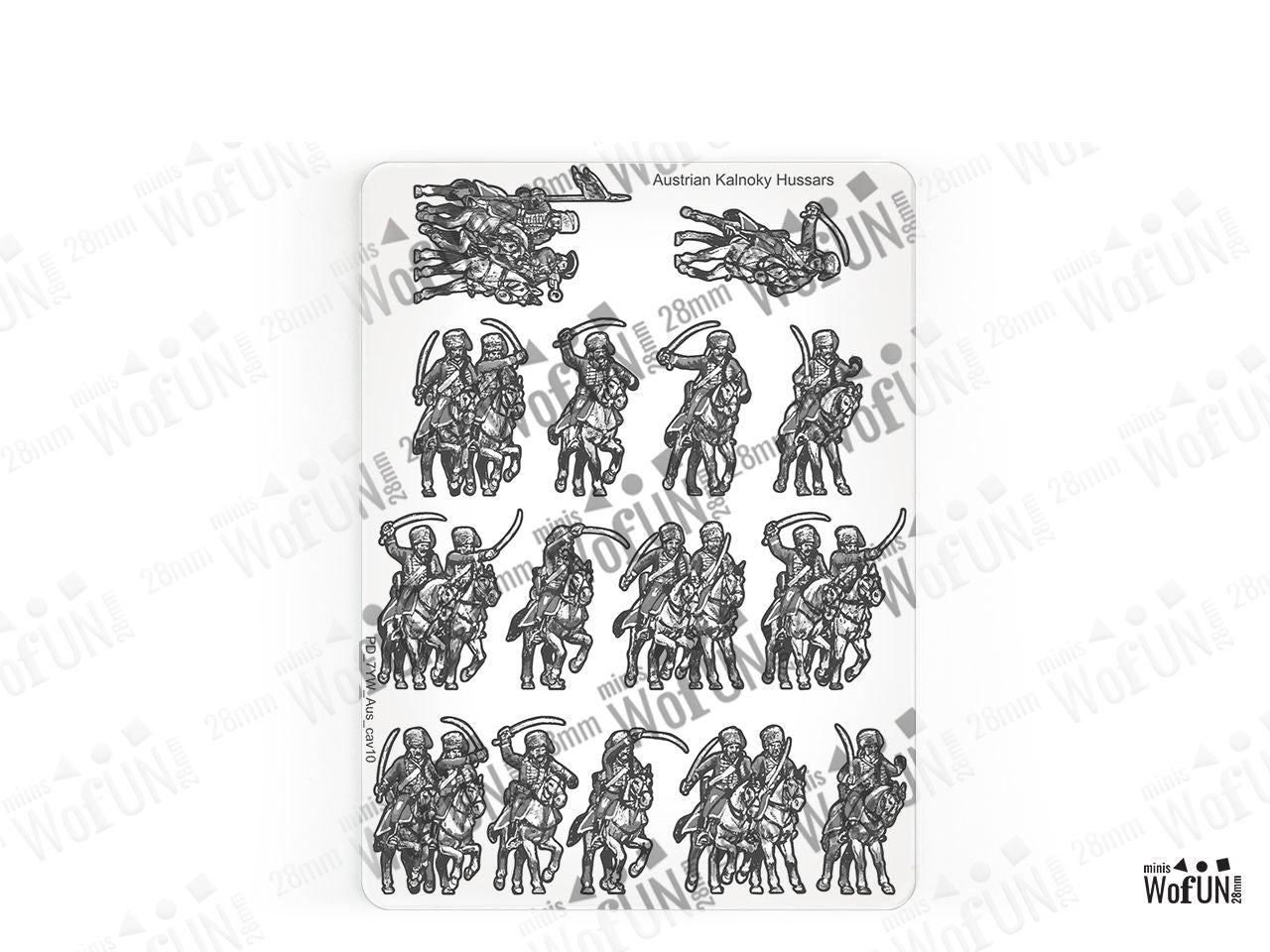 The Kalnoky Hussars Set is crafted on a 15x20 cm Plexiglass sprue and includes: