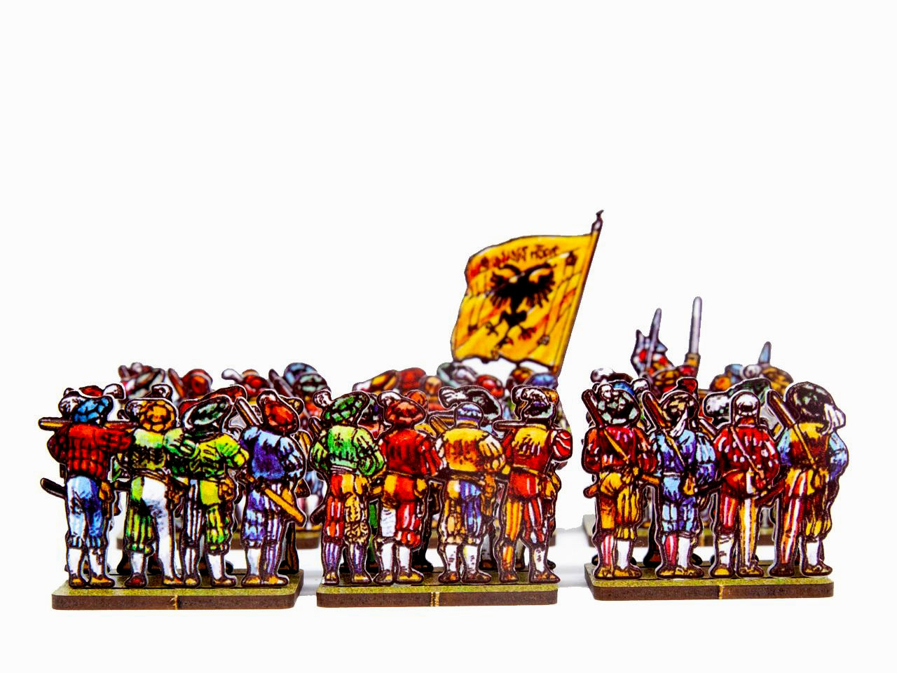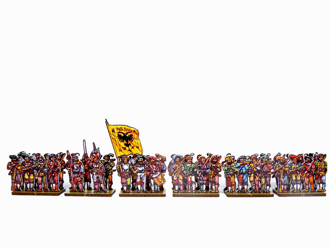 The Landsknecht Arquebusiers Set is crafted on a 15x20 cm Plexiglass sprue and includes: