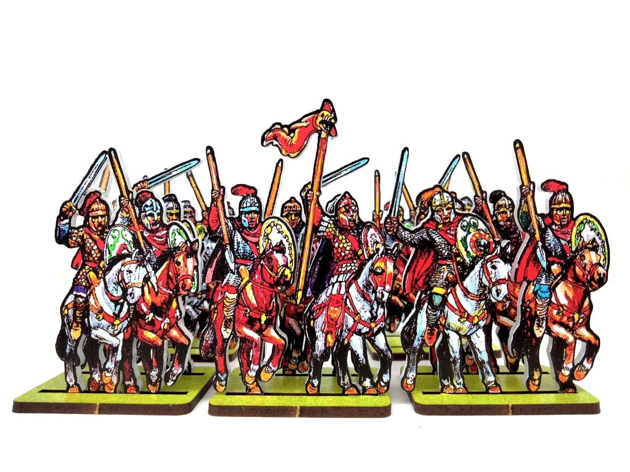 The Late Roman Heavy Cavalry Set is crafted on a 15x20 cm Plexiglass sprue and includes: