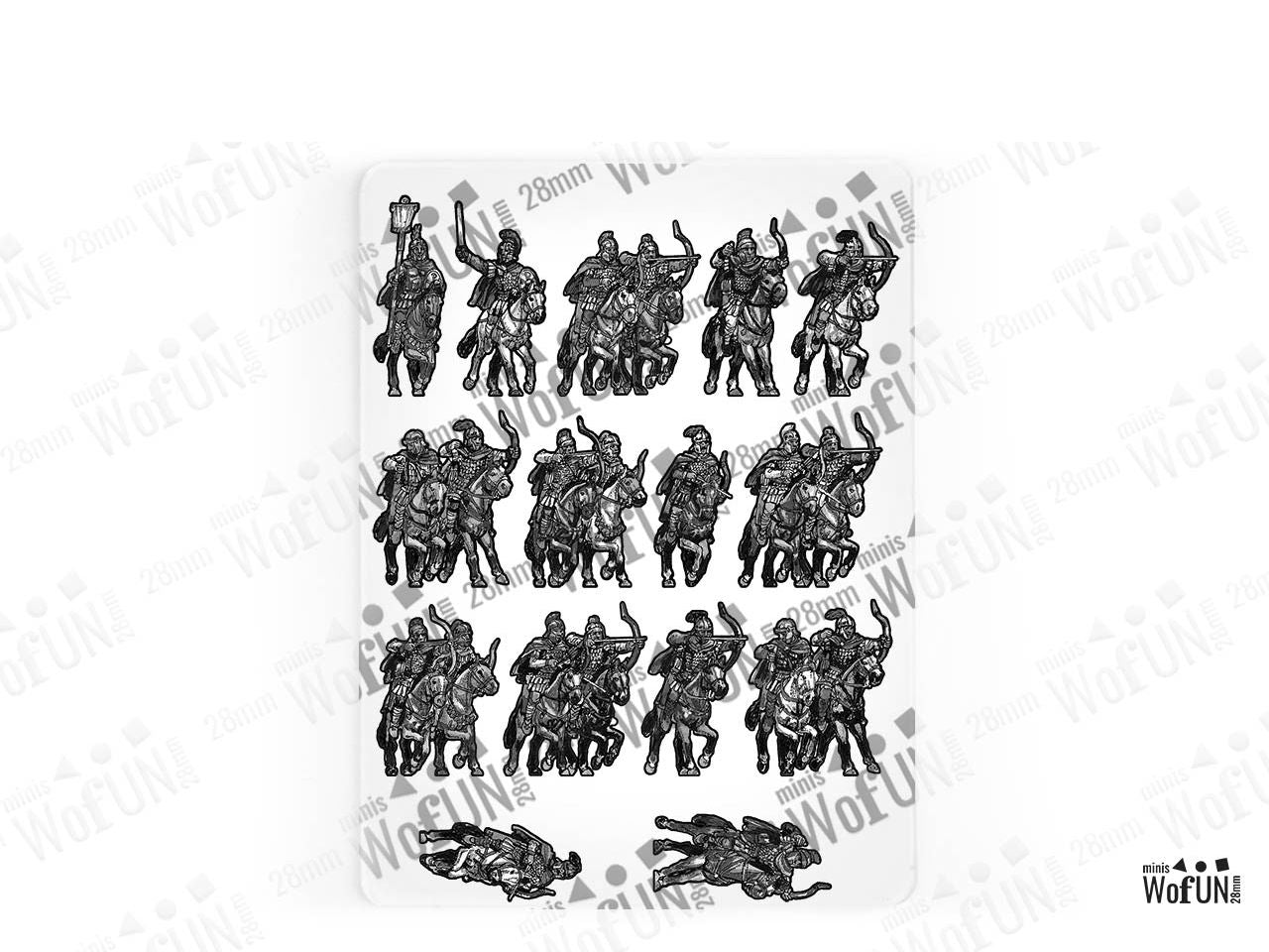 The Late Roman Horse Archers Set is crafted on a 15x20 cm Plexiglass sprue and includes: