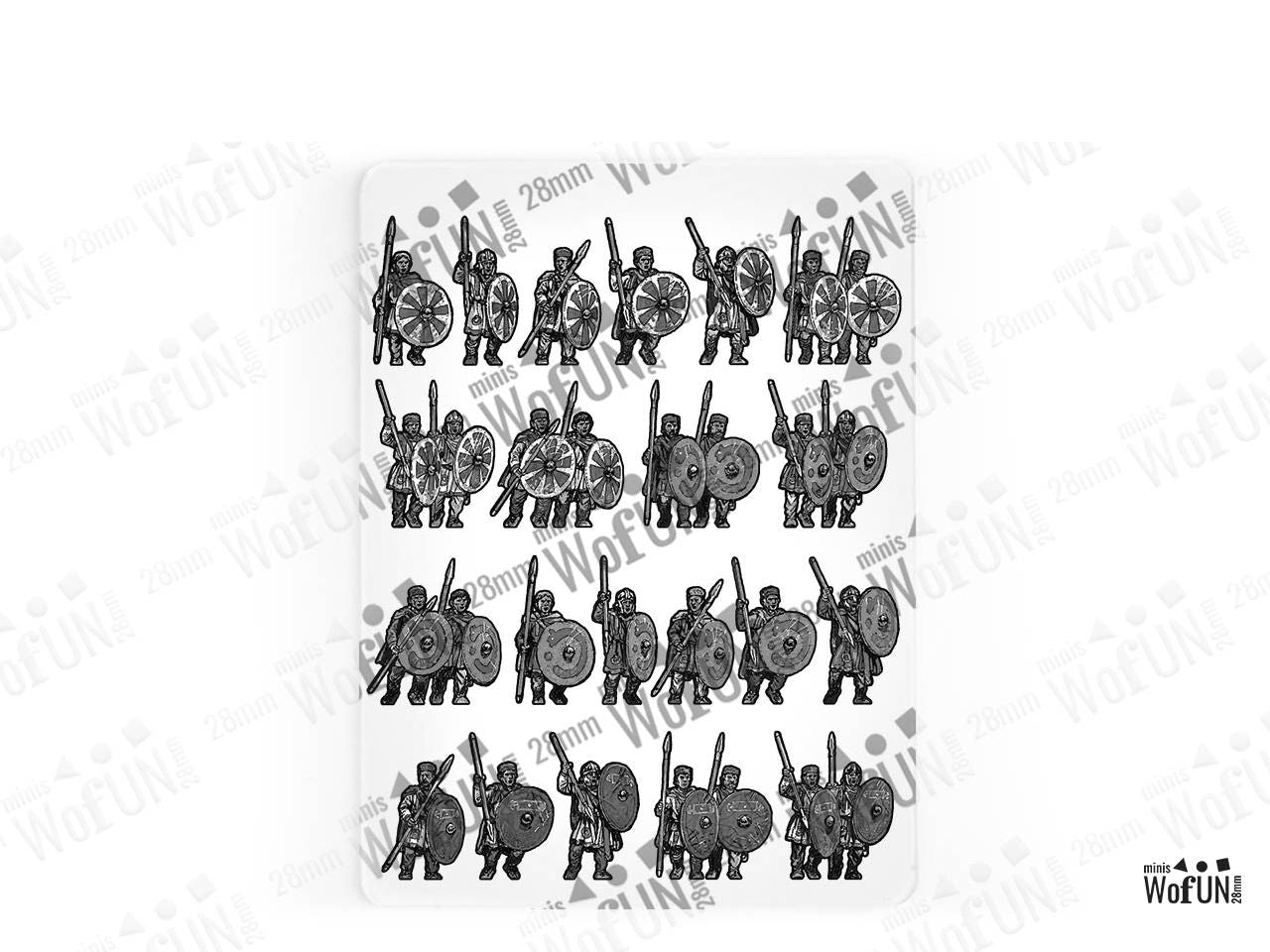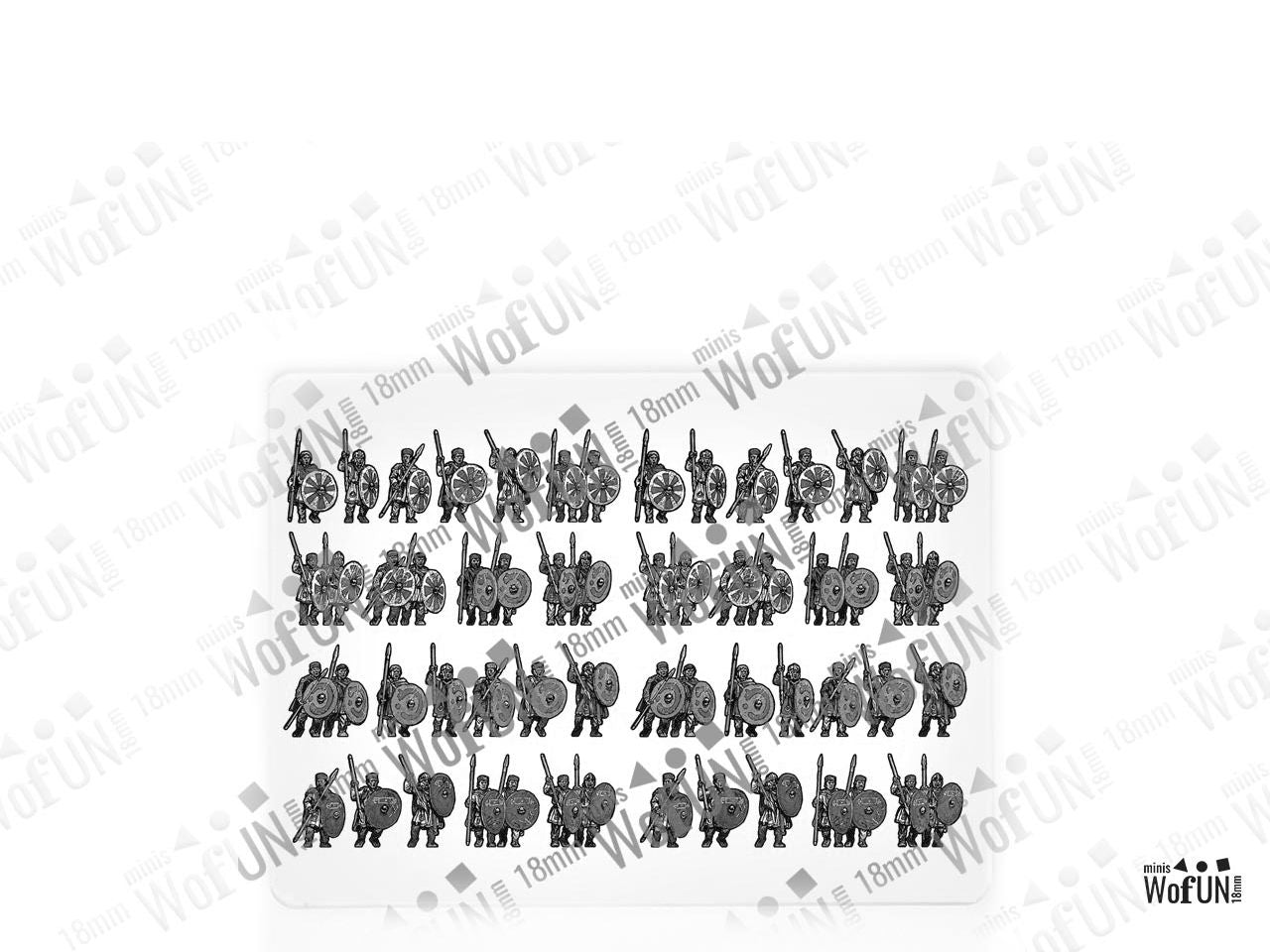 The Late Roman Unarmoured Infantry 2 Set is crafted on a 15x20 cm Plexiglass sprue and includes:
