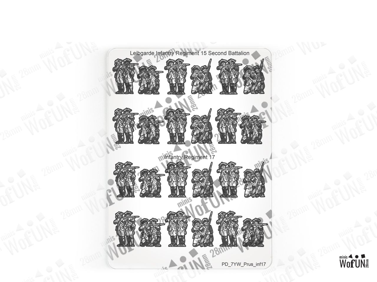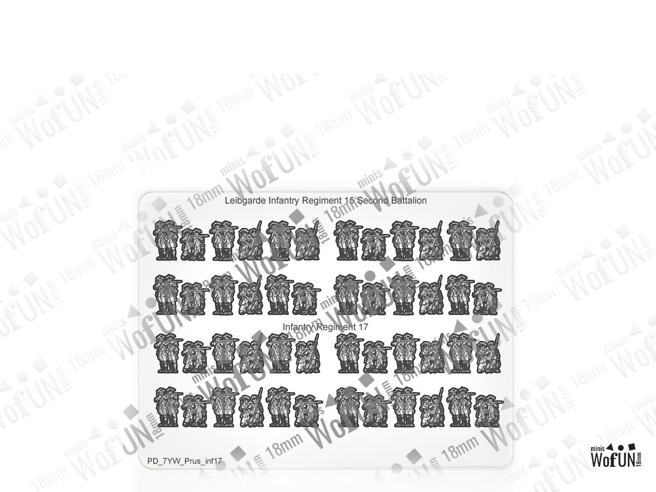 The Leibgarde Infantry Regiment 15 second battalion + Infantry Regiment 17 Set is crafted on a 15x20 cm Plexiglass sprue and includes: