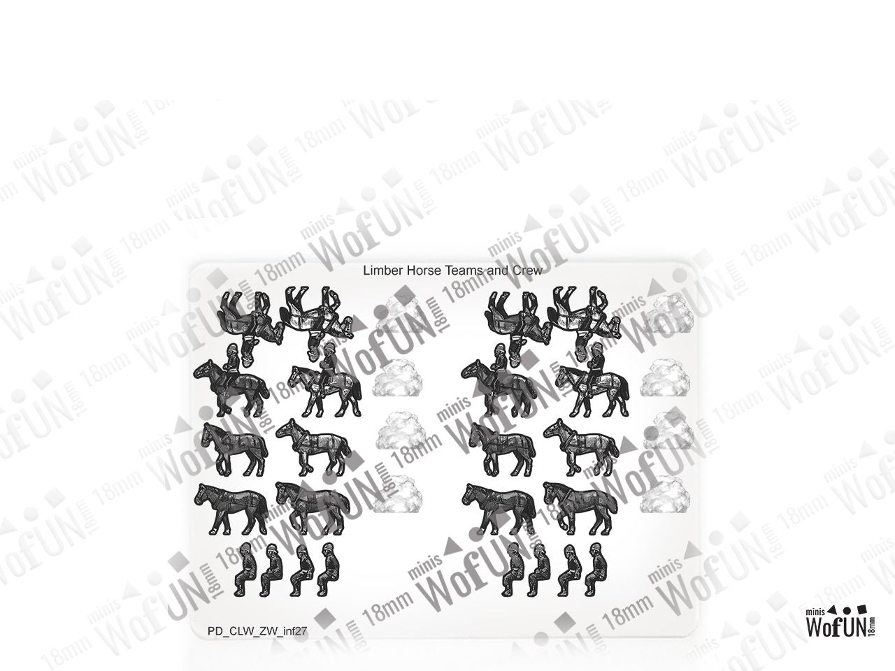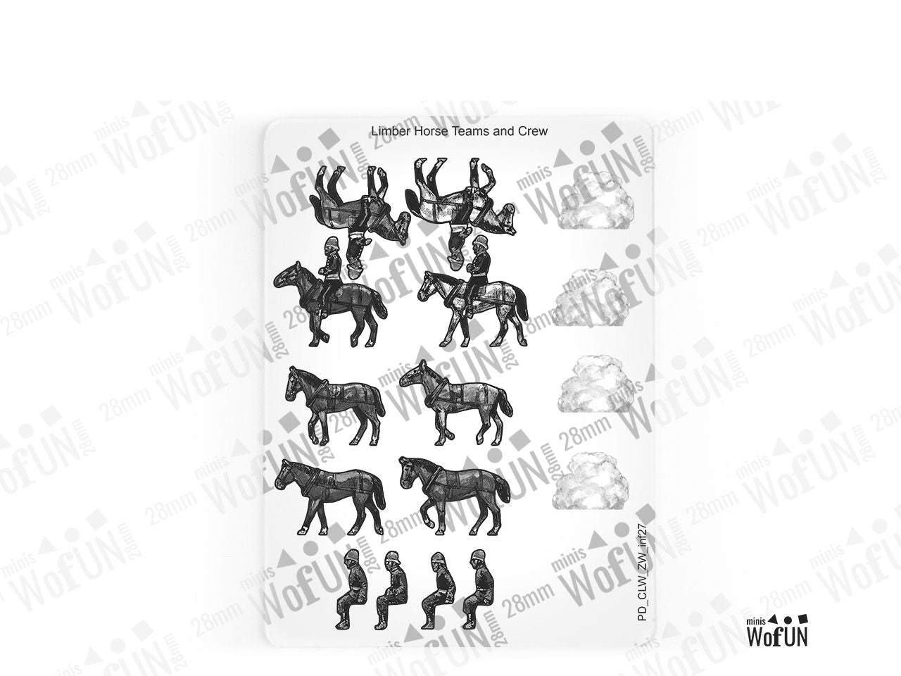 The Limber Horse Teams and Crew Set is crafted on a 15x20 cm Plexiglass sprue and includes:
