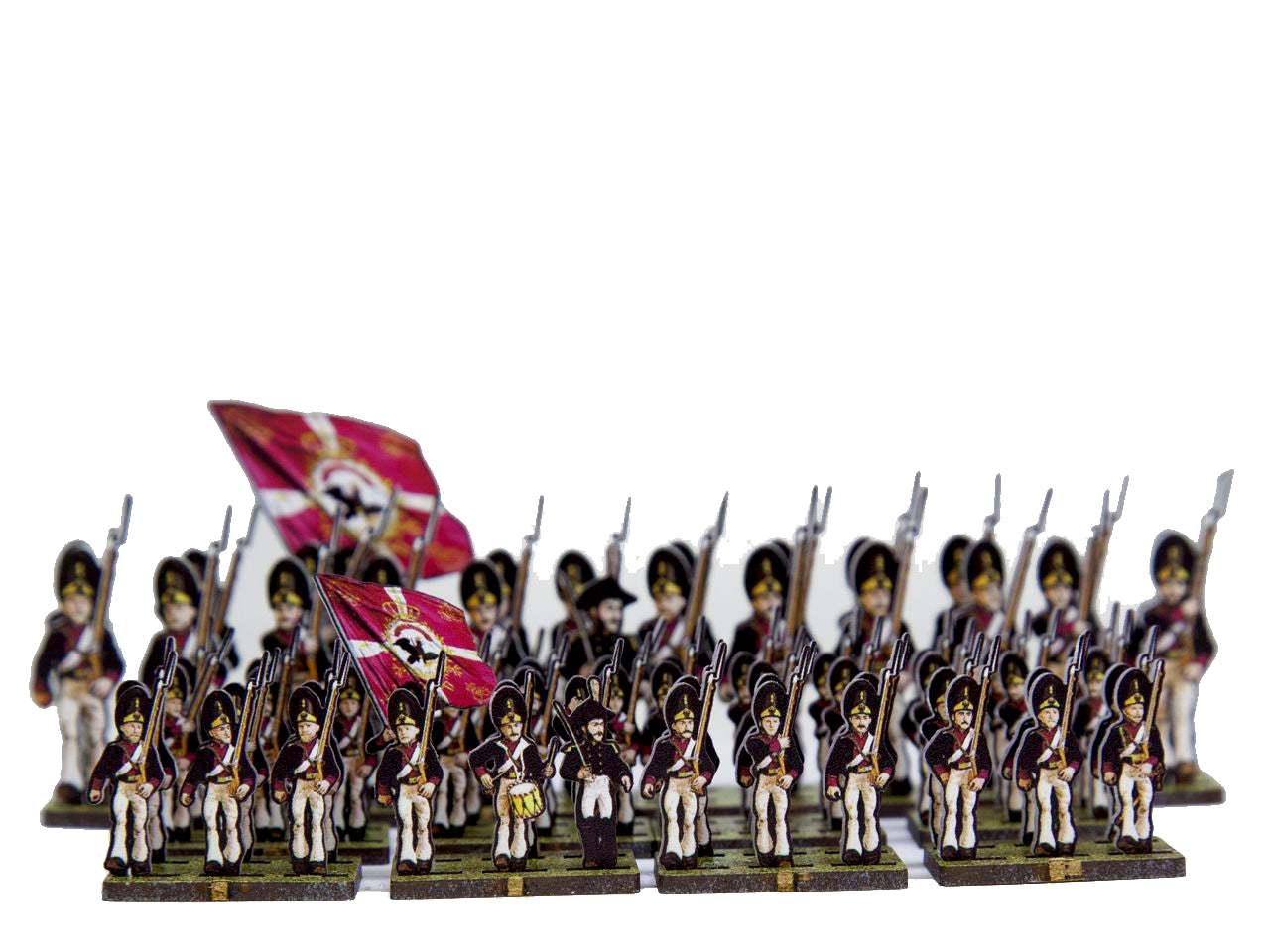 - An Infantry Base holds 6 figurines, in 2 ranks (one behind the other).