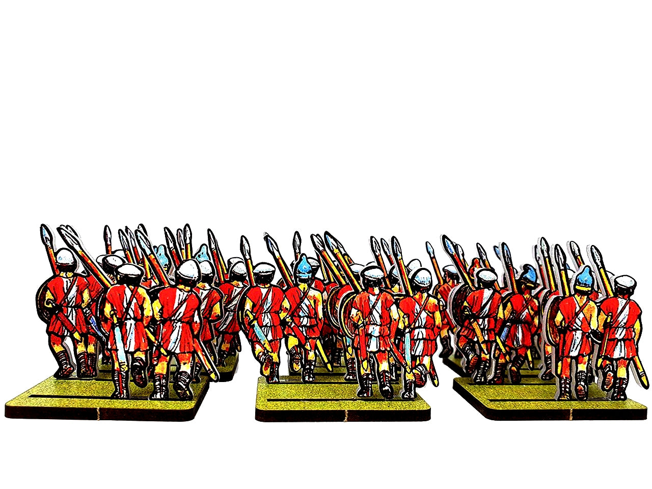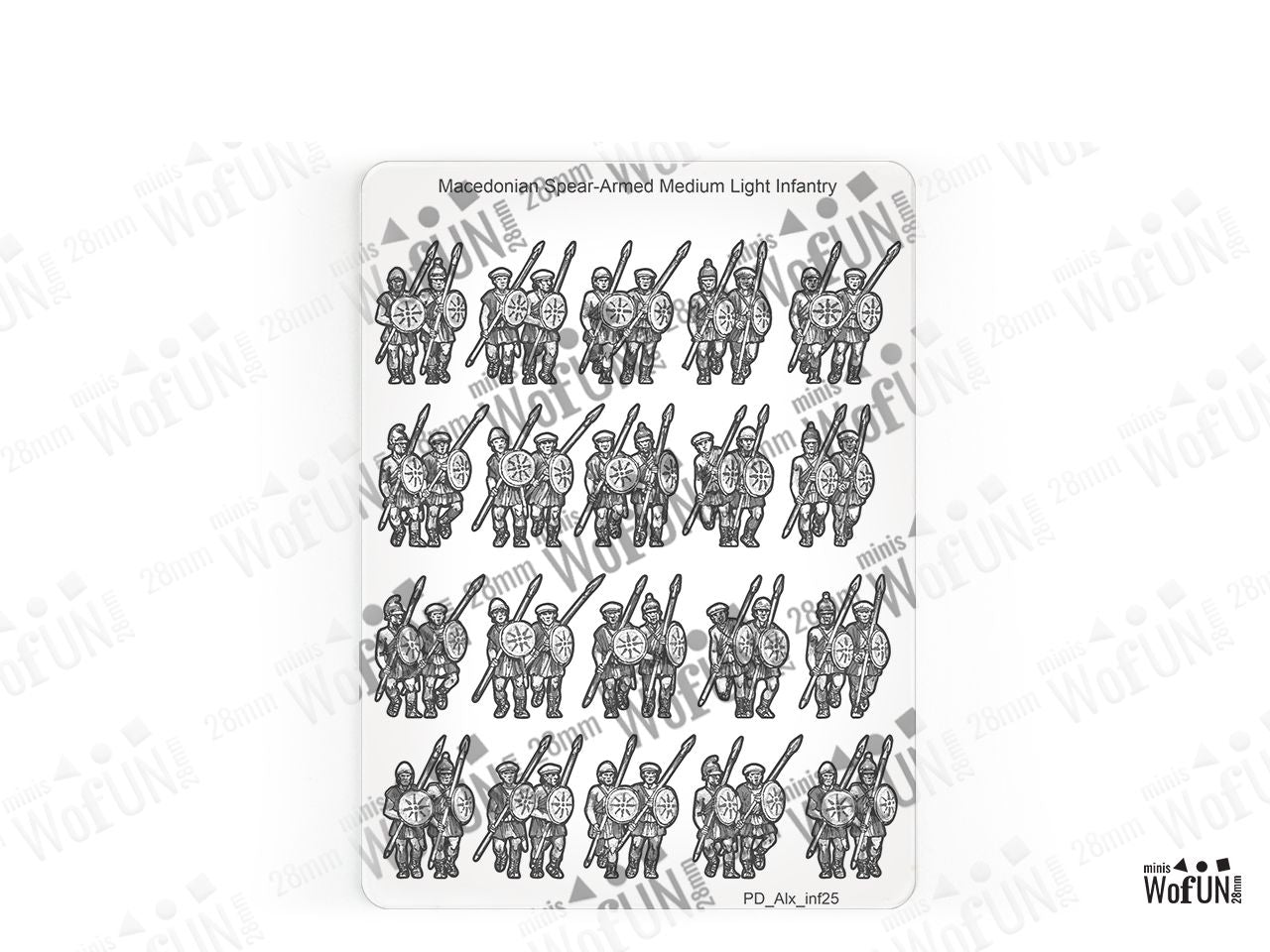 The Macedonian Spear-Armed Light-Medium Infantry Set is crafted on a 15x20 cm Plexiglass sprue and includes: