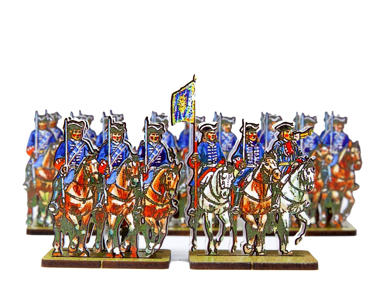 - A Cavalry Base holds 2 strips of figurines, in 2 ranks.