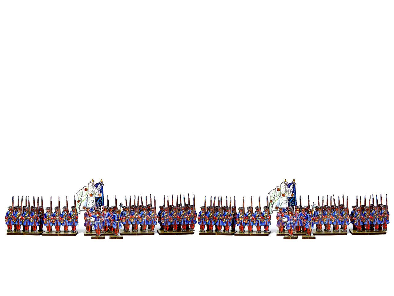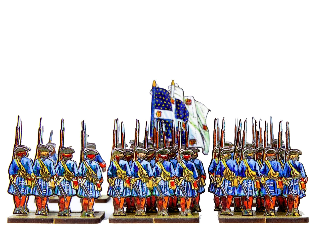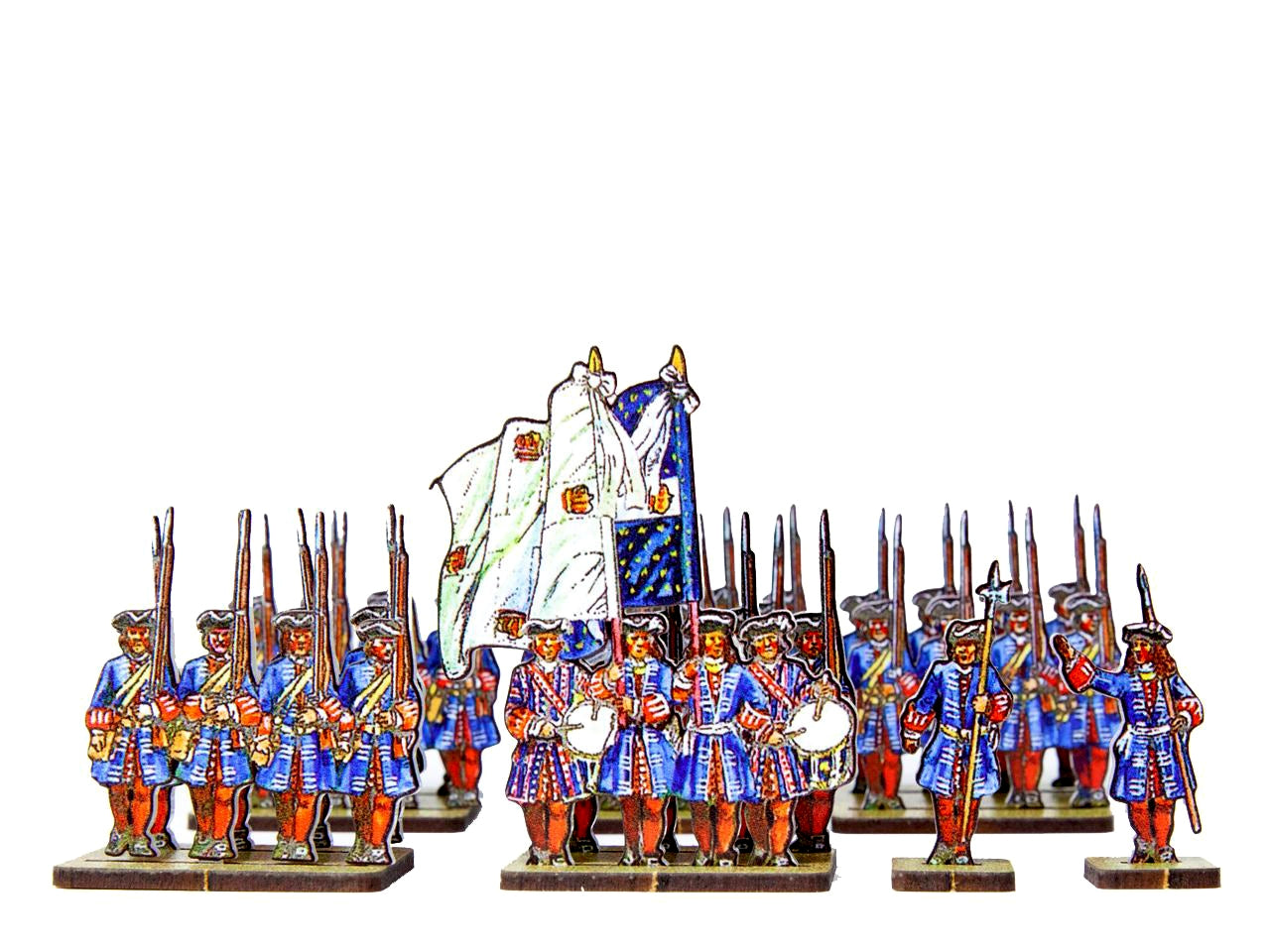 The Maison Du Roi - Gardes Francaises Set is crafted on a 15x20 cm Plexiglass sprue and includes: