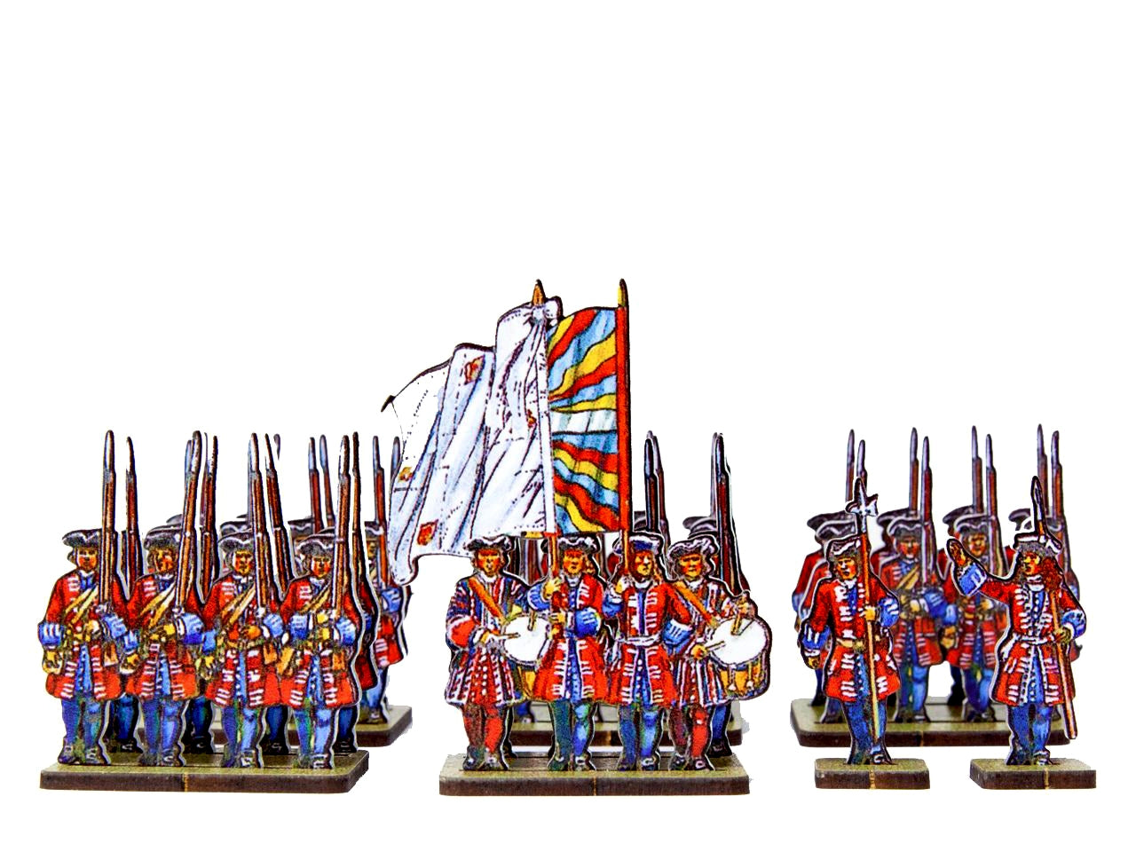 The Maison Du Roi - Gardes Suisses Set is crafted on a 15x20 cm Plexiglass sprue and includes: