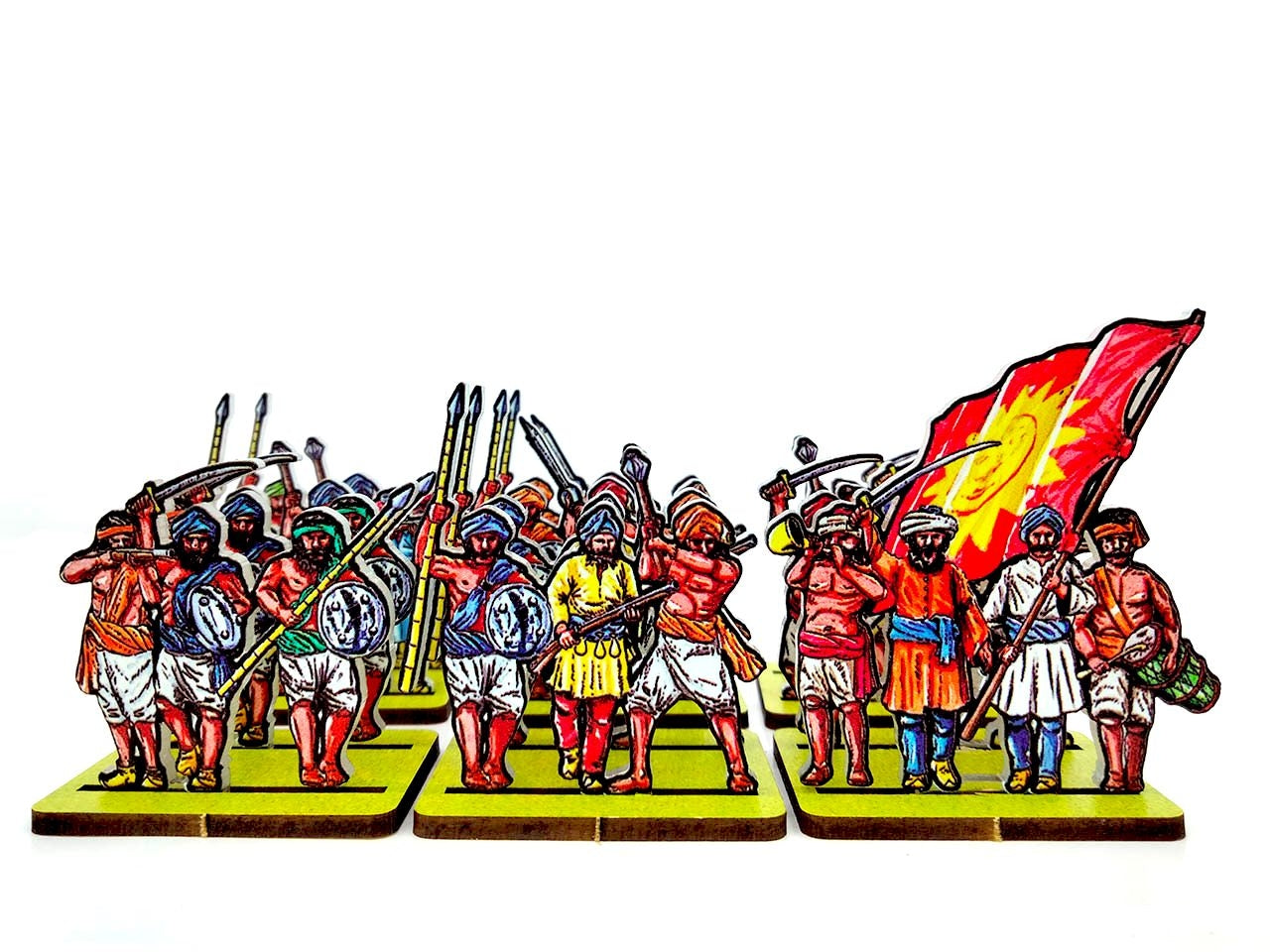 The Maratha Warband Set is crafted on a 15x20 cm Plexiglass sprue and includes: