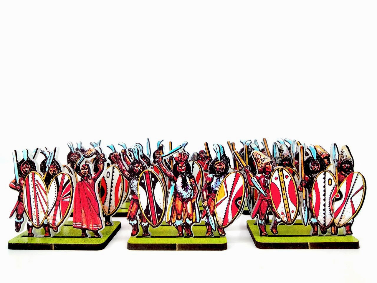 The Masai Warriors Large Shieldss Set is crafted on a 15x20 cm Plexiglass sprue and includes: