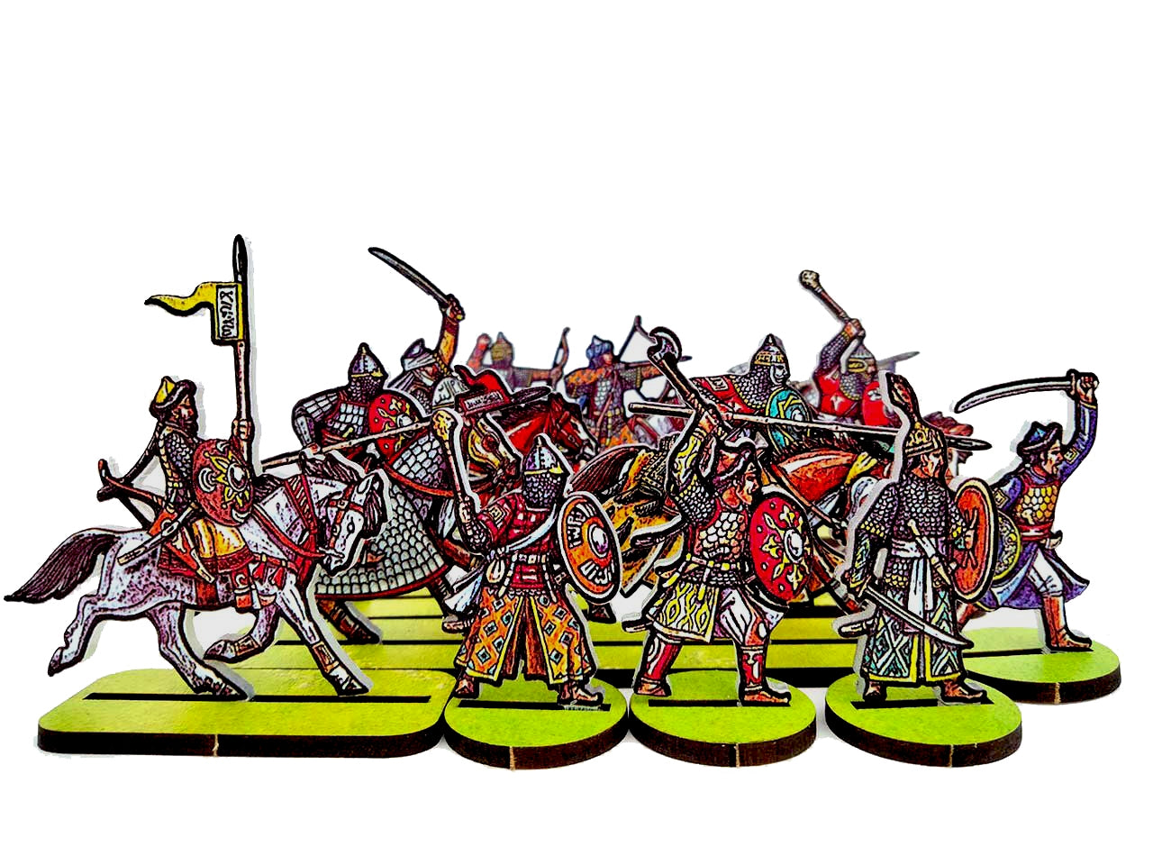 The Middle Eastern Heavy Cavalry Set is crafted on a 15x20 cm Plexiglass sprue and includes: