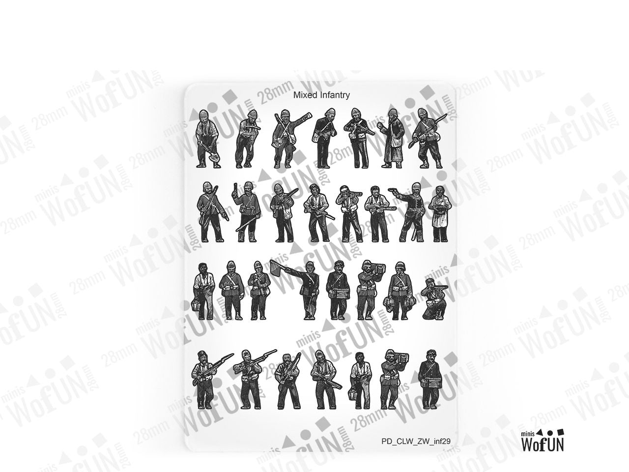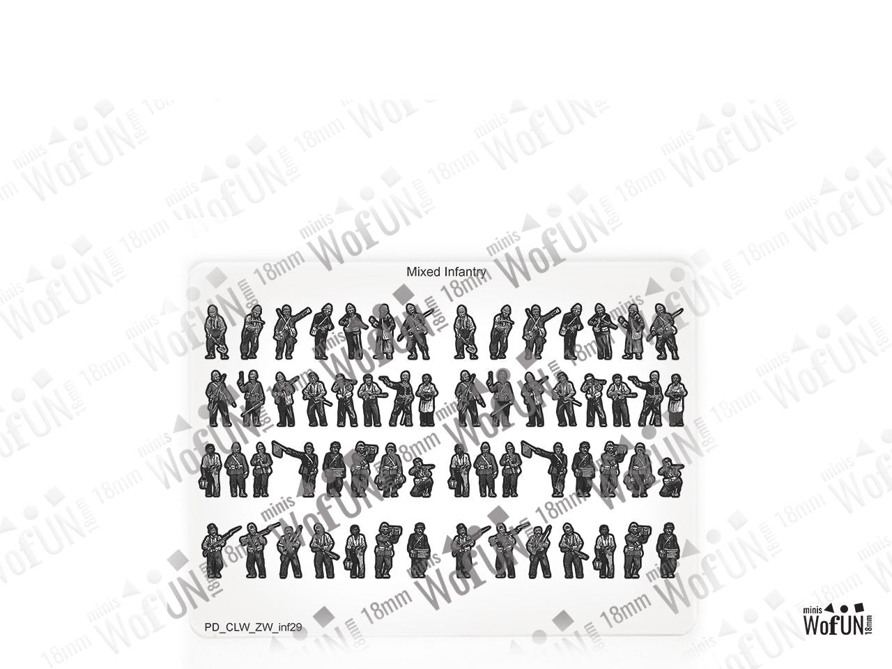 The Mixed Infantry Set is crafted on a 15x20 cm Plexiglass sprue and includes: