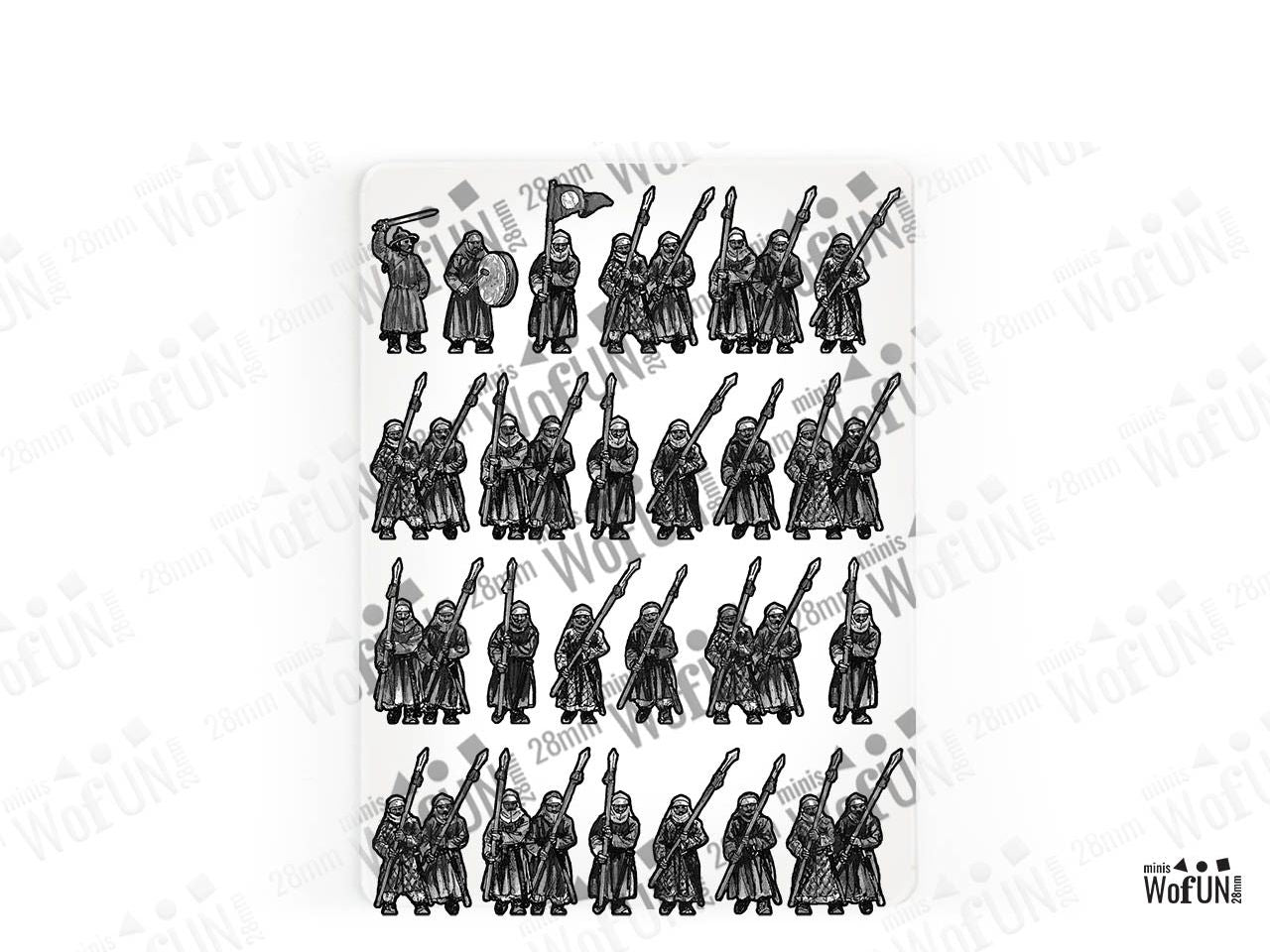 The Mongol Spearmen Set is crafted on a 15x20 cm Plexiglass sprue and includes:
