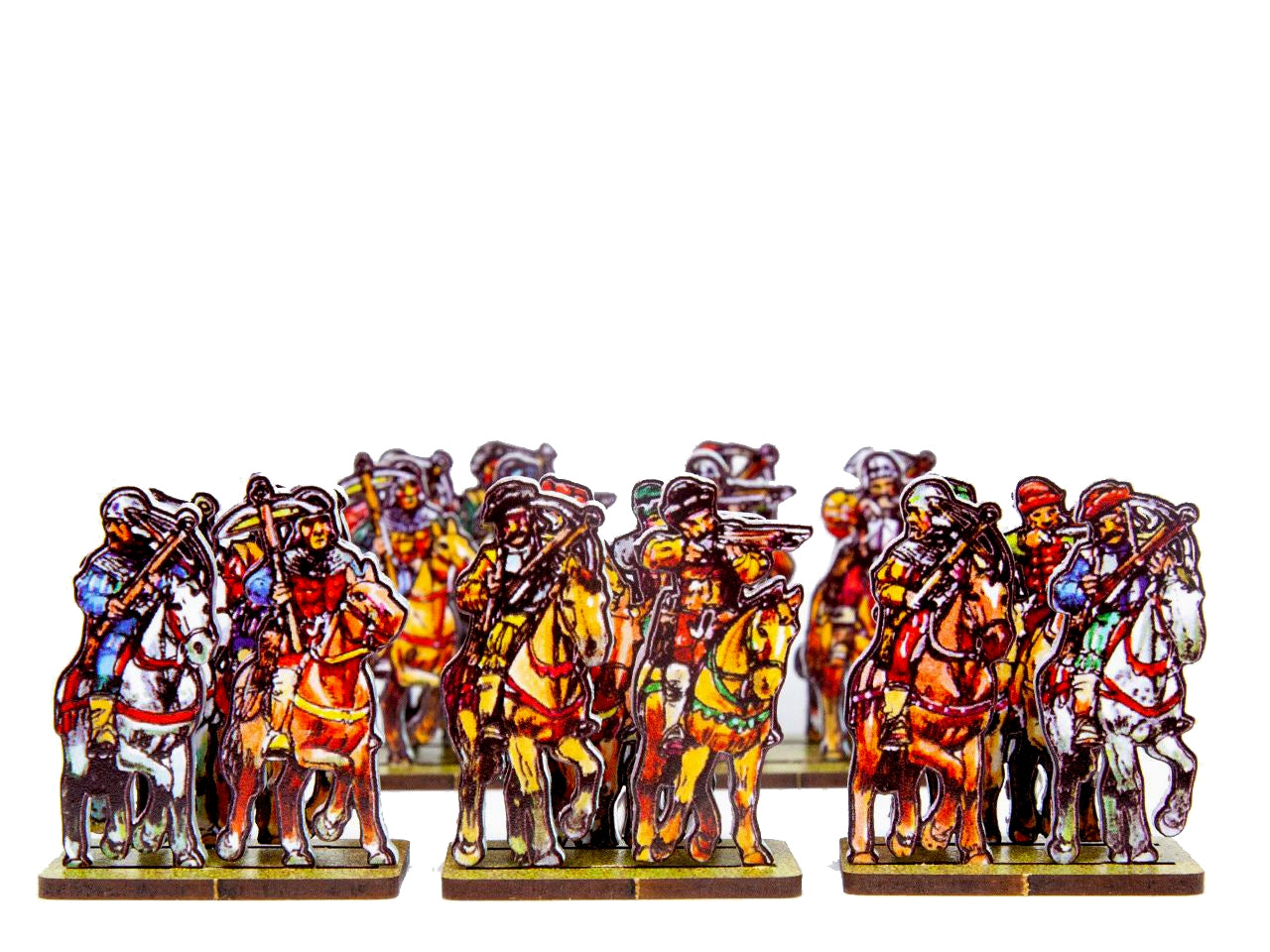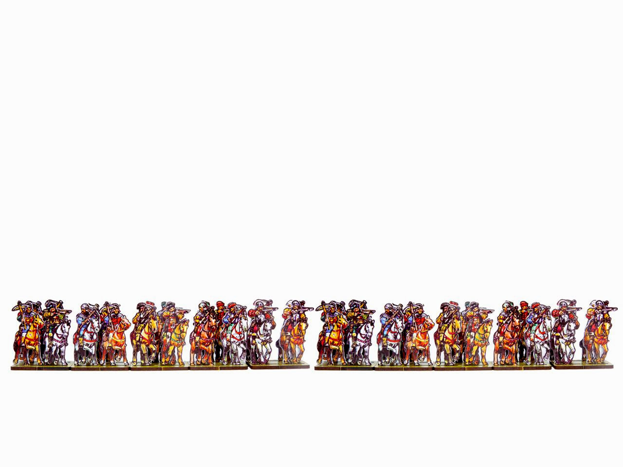 The Mounted Crossbowmen Set is crafted on a 15x20 cm Plexiglass sprue and includes: