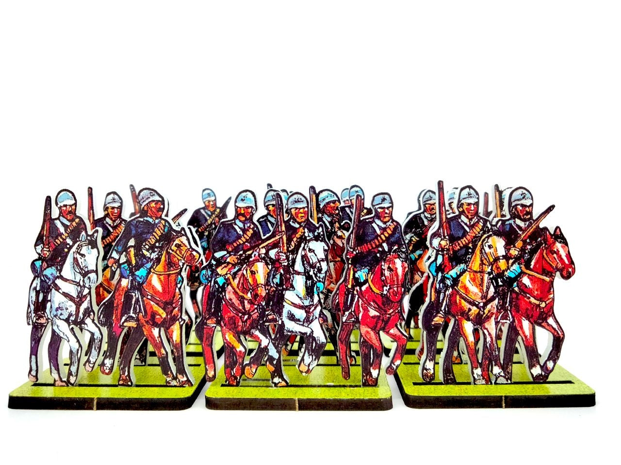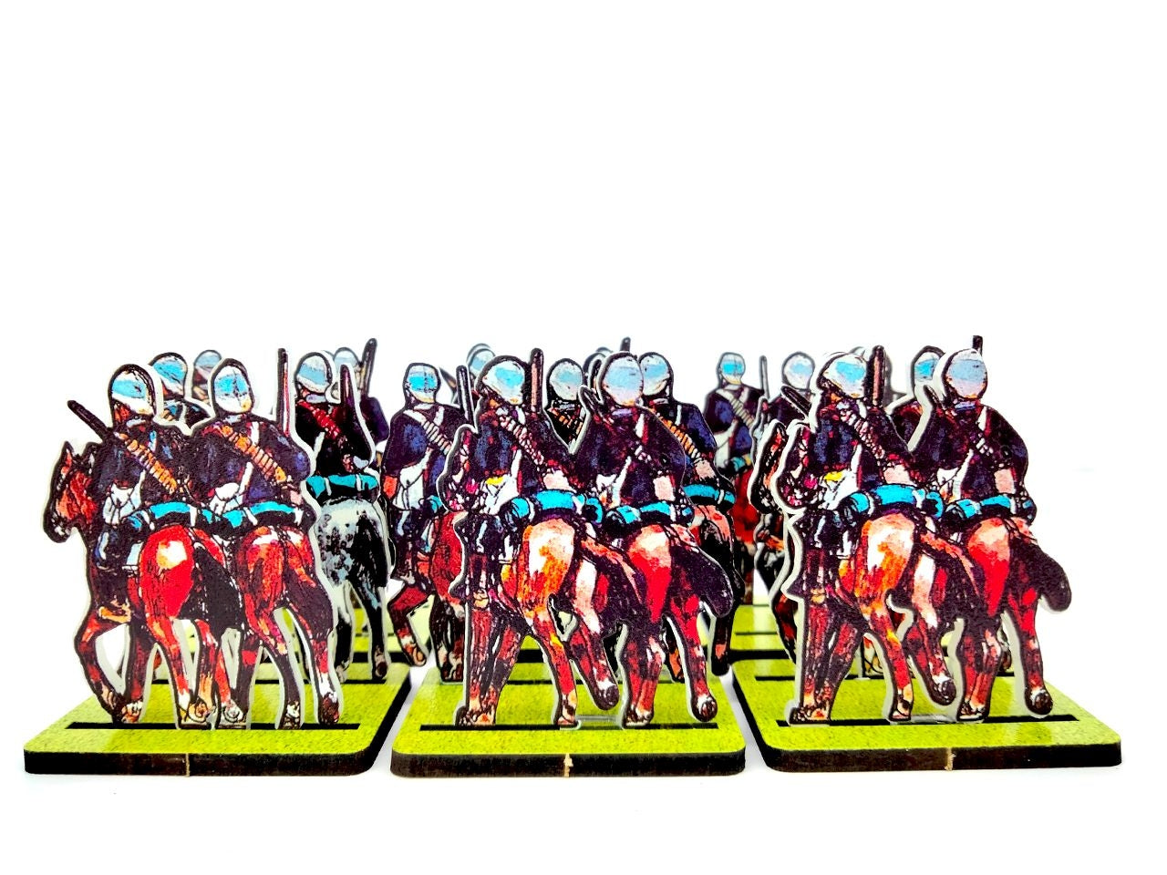 - A Cavalry Base holds 2 strips of figurines, in 2 ranks.
