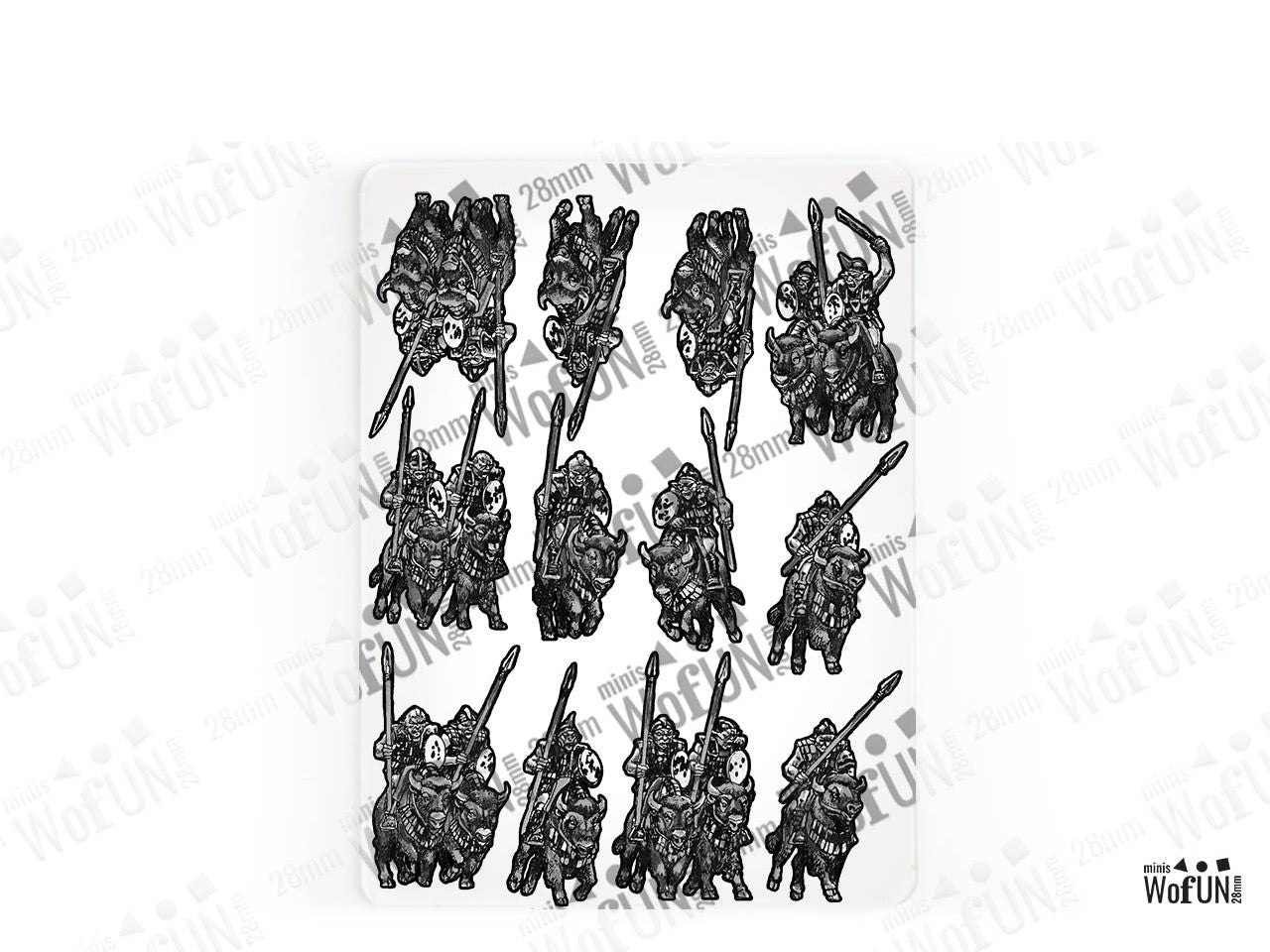 The Mutant Bison Riders Set is crafted on a 15x20 cm Plexiglass sprue and includes: