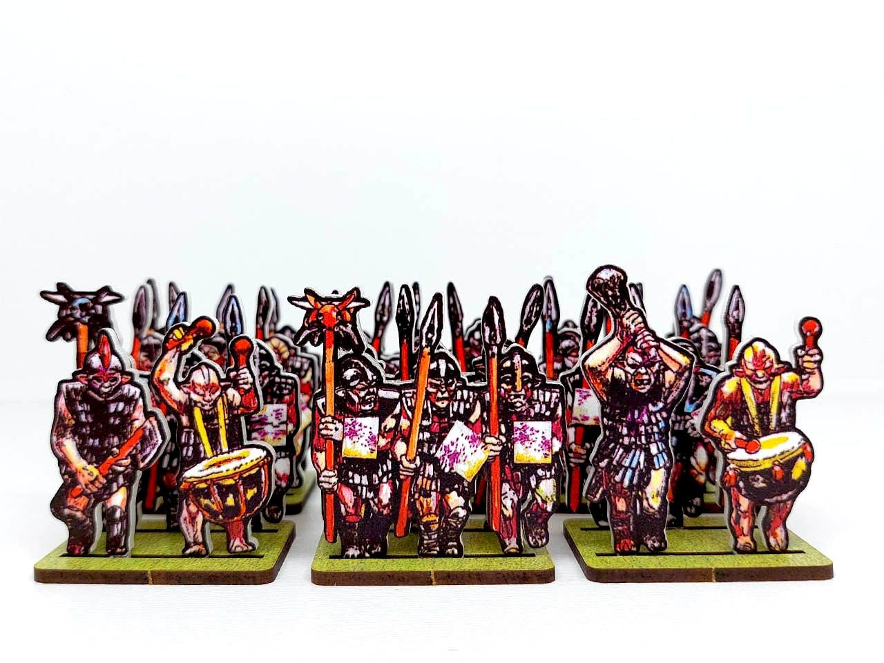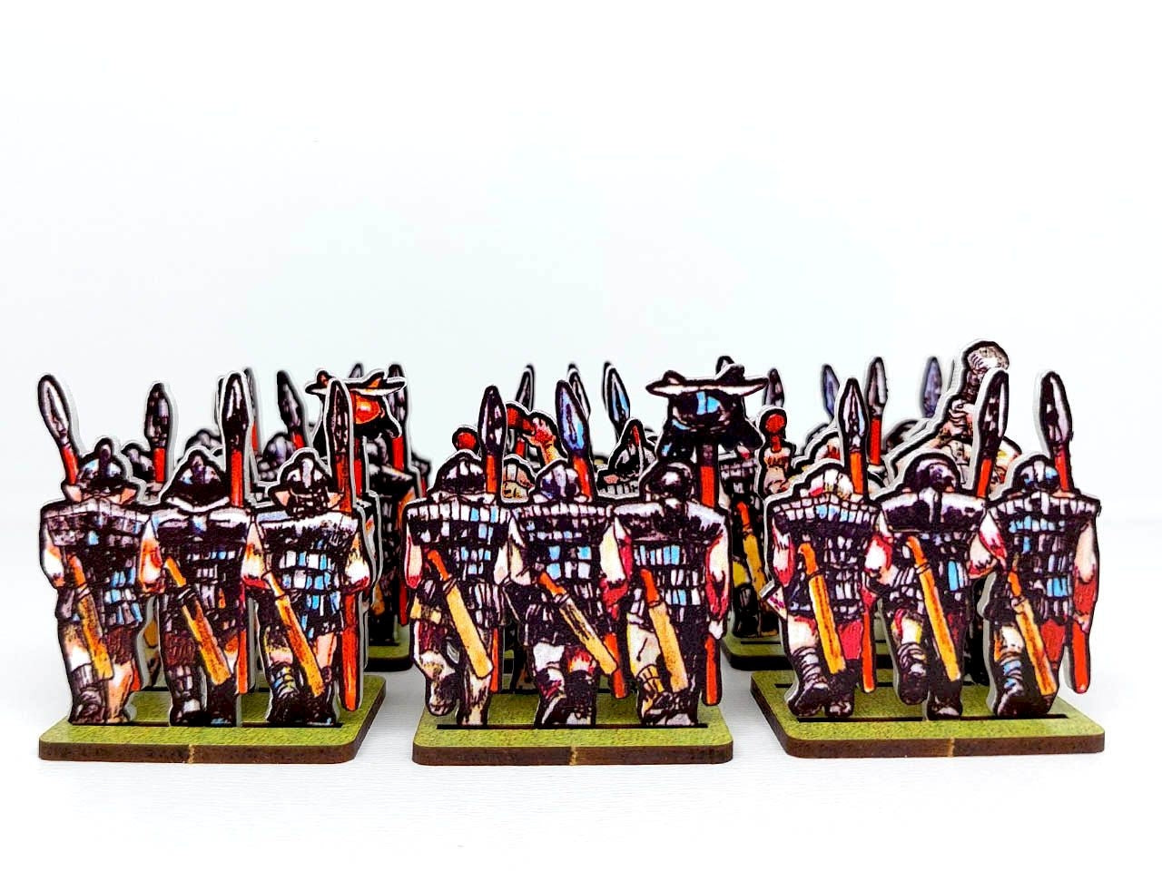- An Infantry Base holds 2 strips of figurines, in 2 ranks (one behind the other).