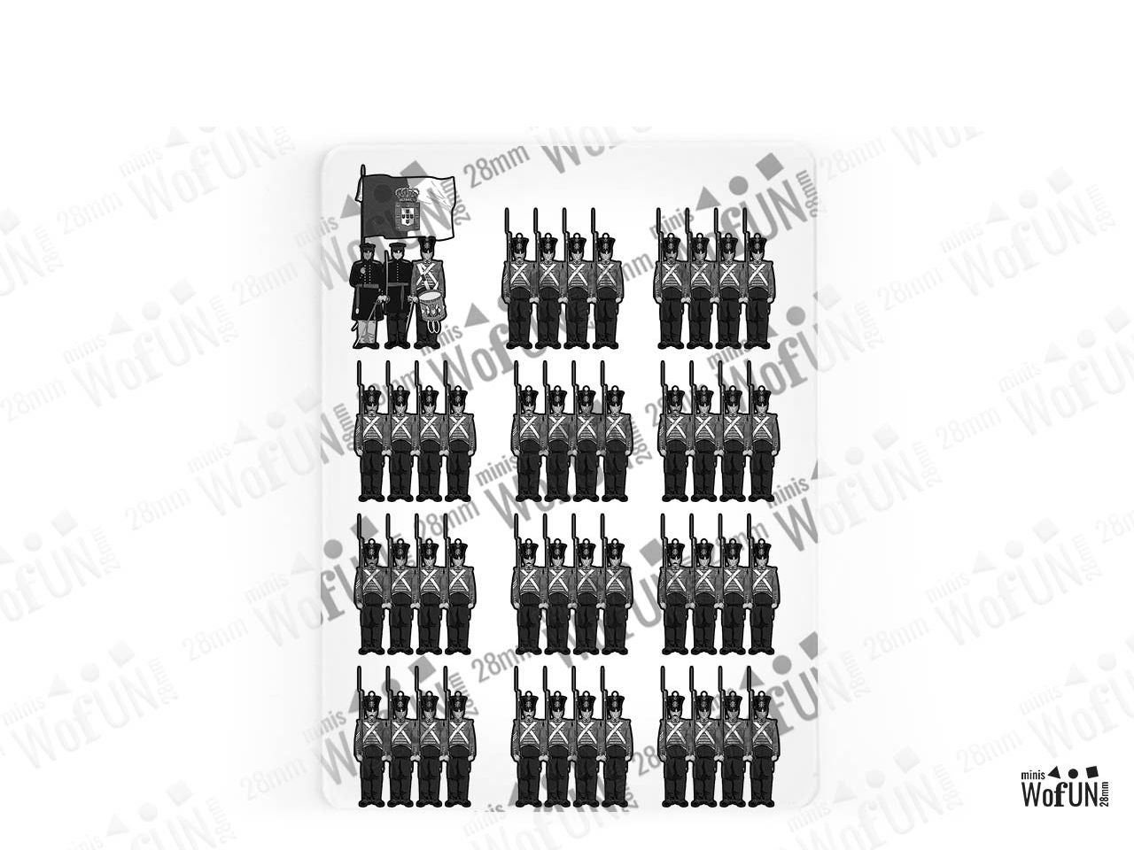 - An Infantry Base holds 2 strips of figurines, in 2 ranks (one behind the other).