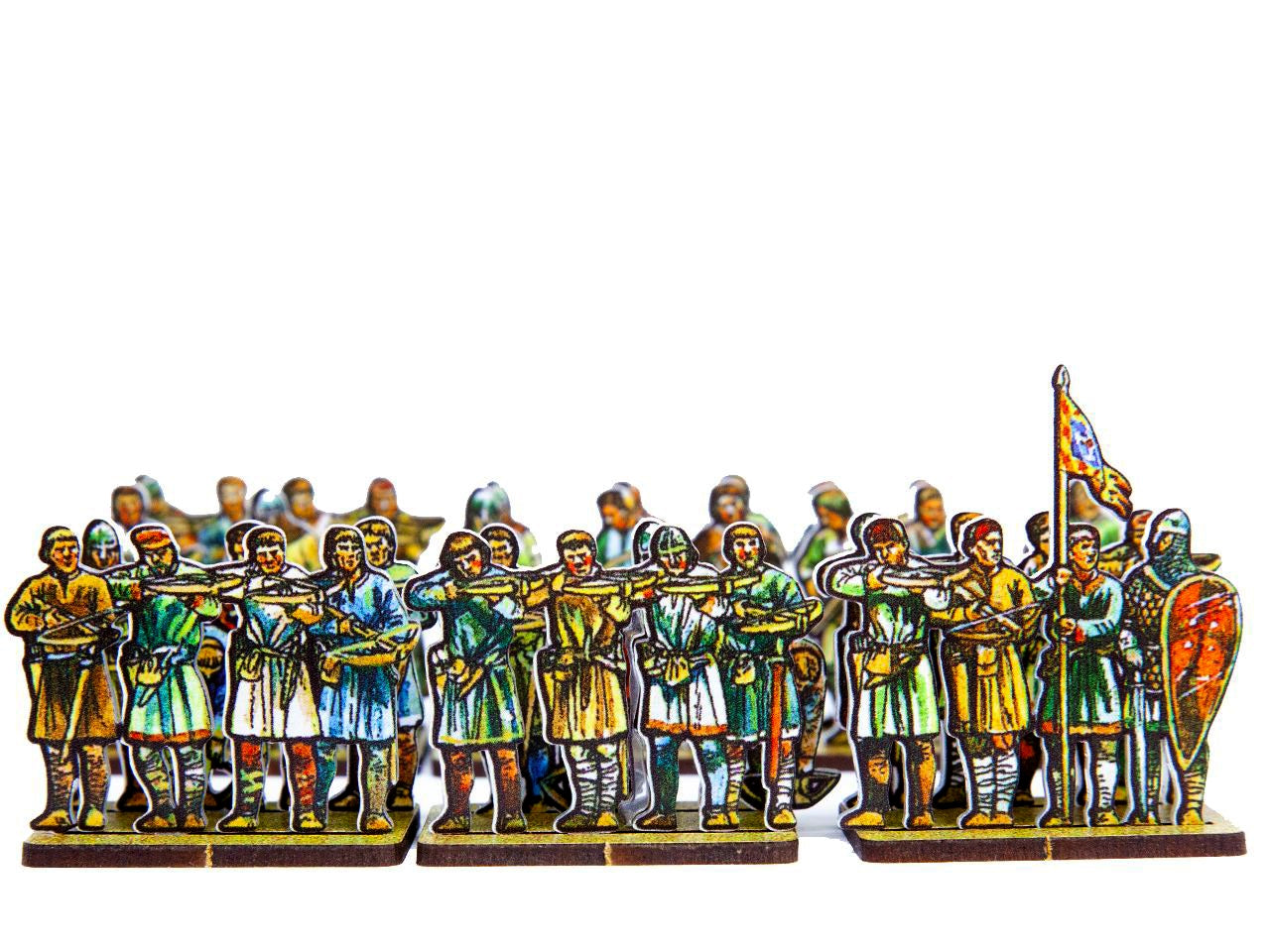 The Norman Crossbowmen Set is crafted on a 15x20 cm Plexiglass sprue and includes: