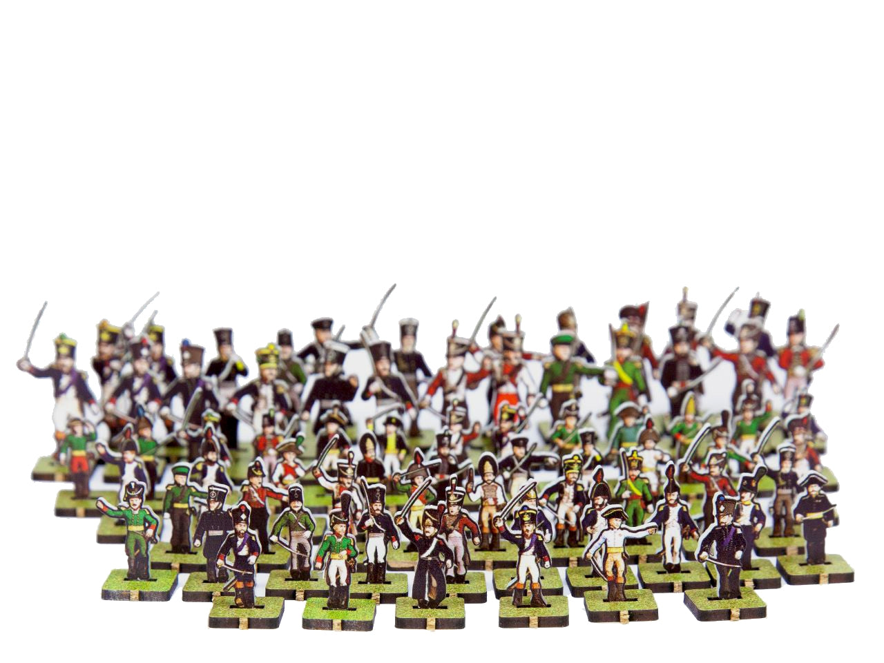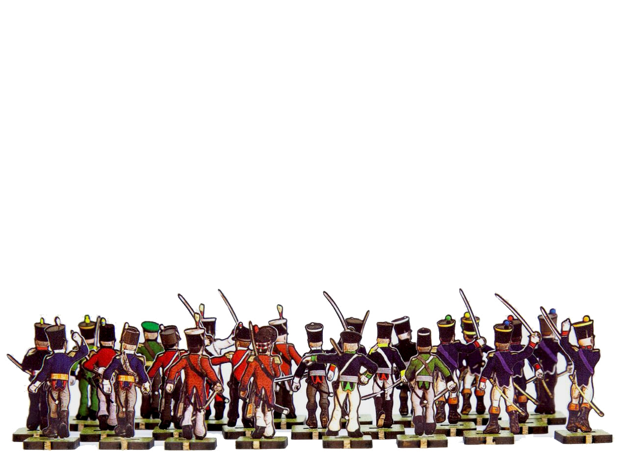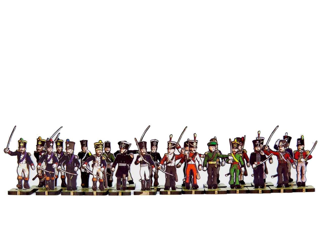 The Officers 1815 Set is crafted on a 15x20 cm Plexiglass sprue and includes: