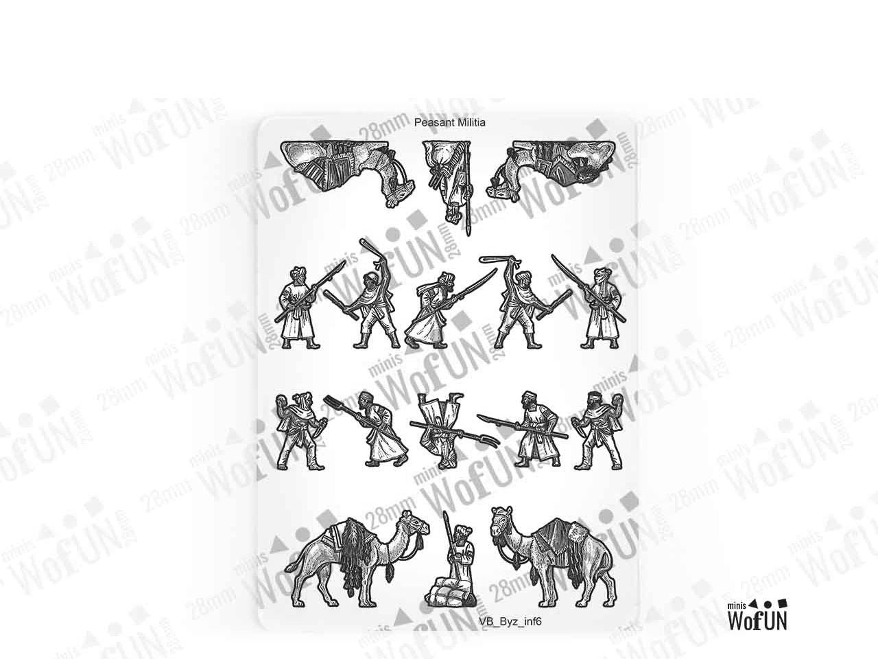 The Peasant Militia Set is crafted on a 15x20 cm Plexiglass sprue and includes: