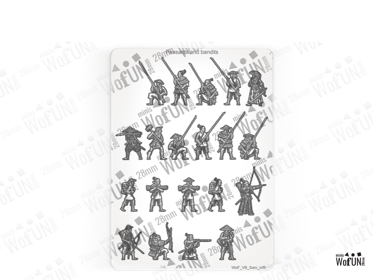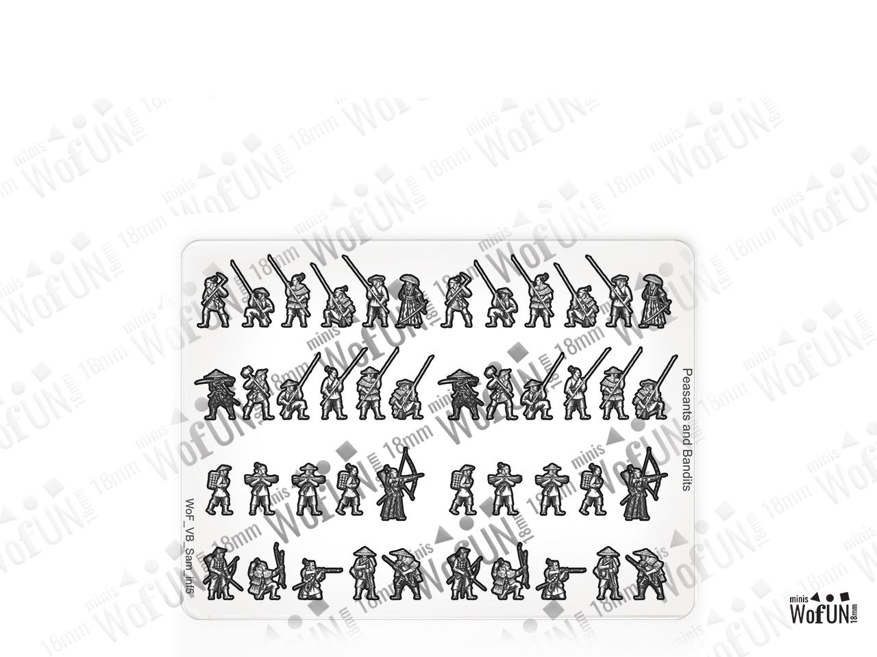 The Peasants and Bandits Set is crafted on a 15x20 cm Plexiglass sprue and includes: