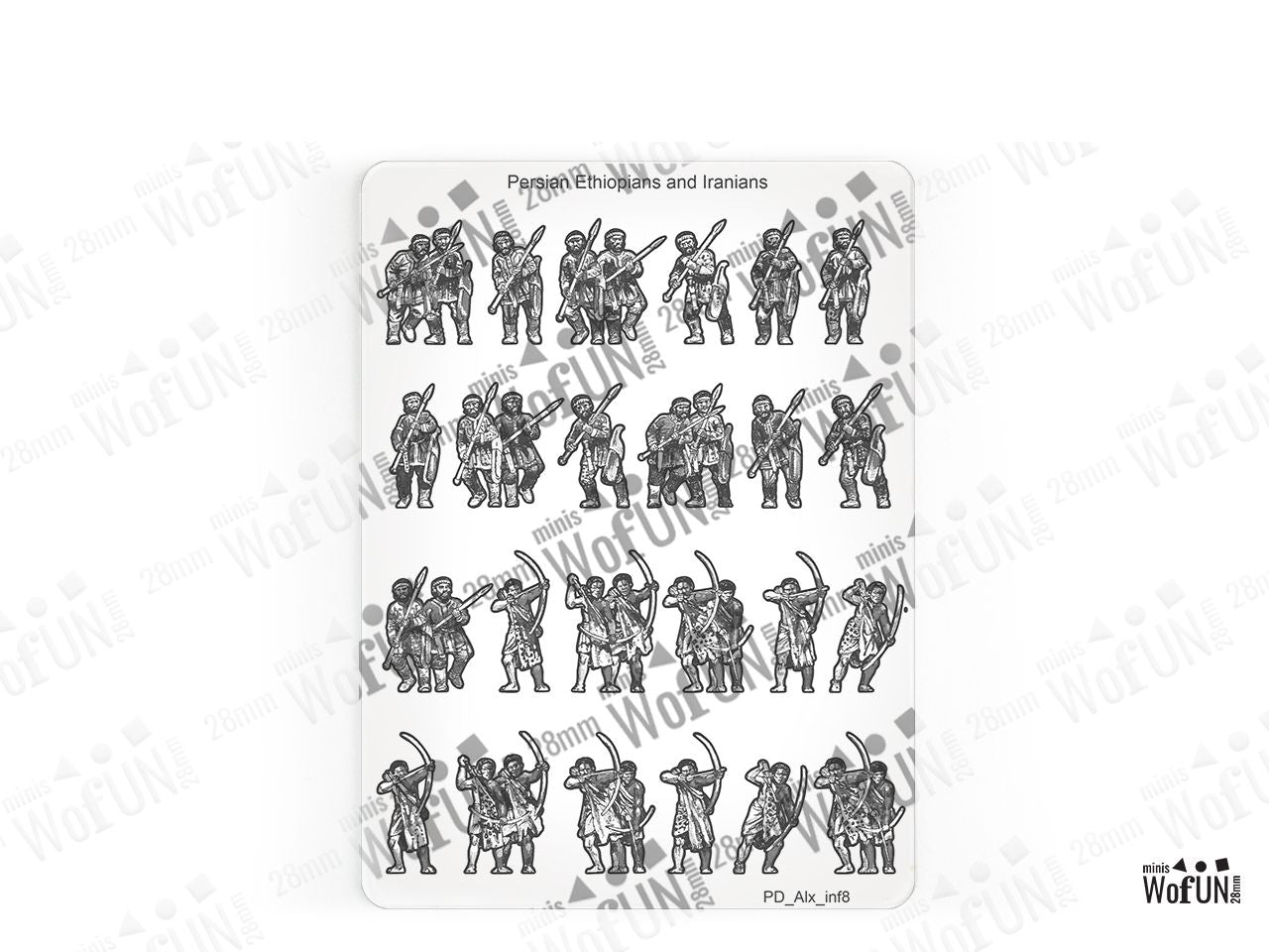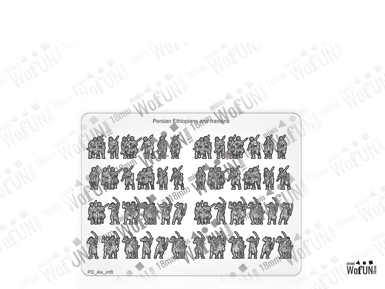 The Persian Ethiopians and Iranians Set is crafted on a 15x20 cm Plexiglass sprue and includes: