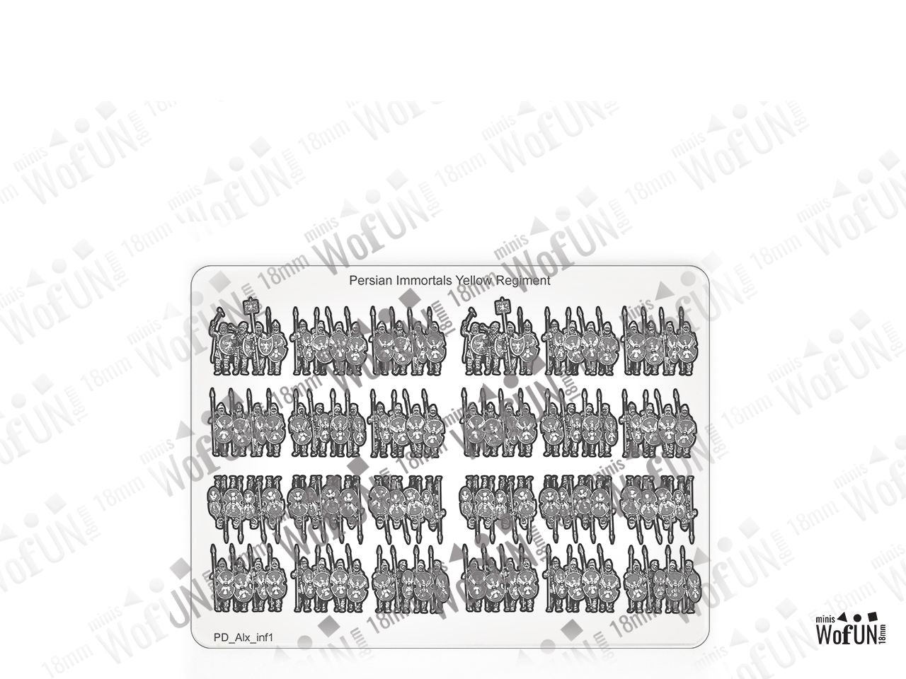 The Persian Immortals Yellow Regiment Set is crafted on a 15x20 cm Plexiglass sprue and includes: