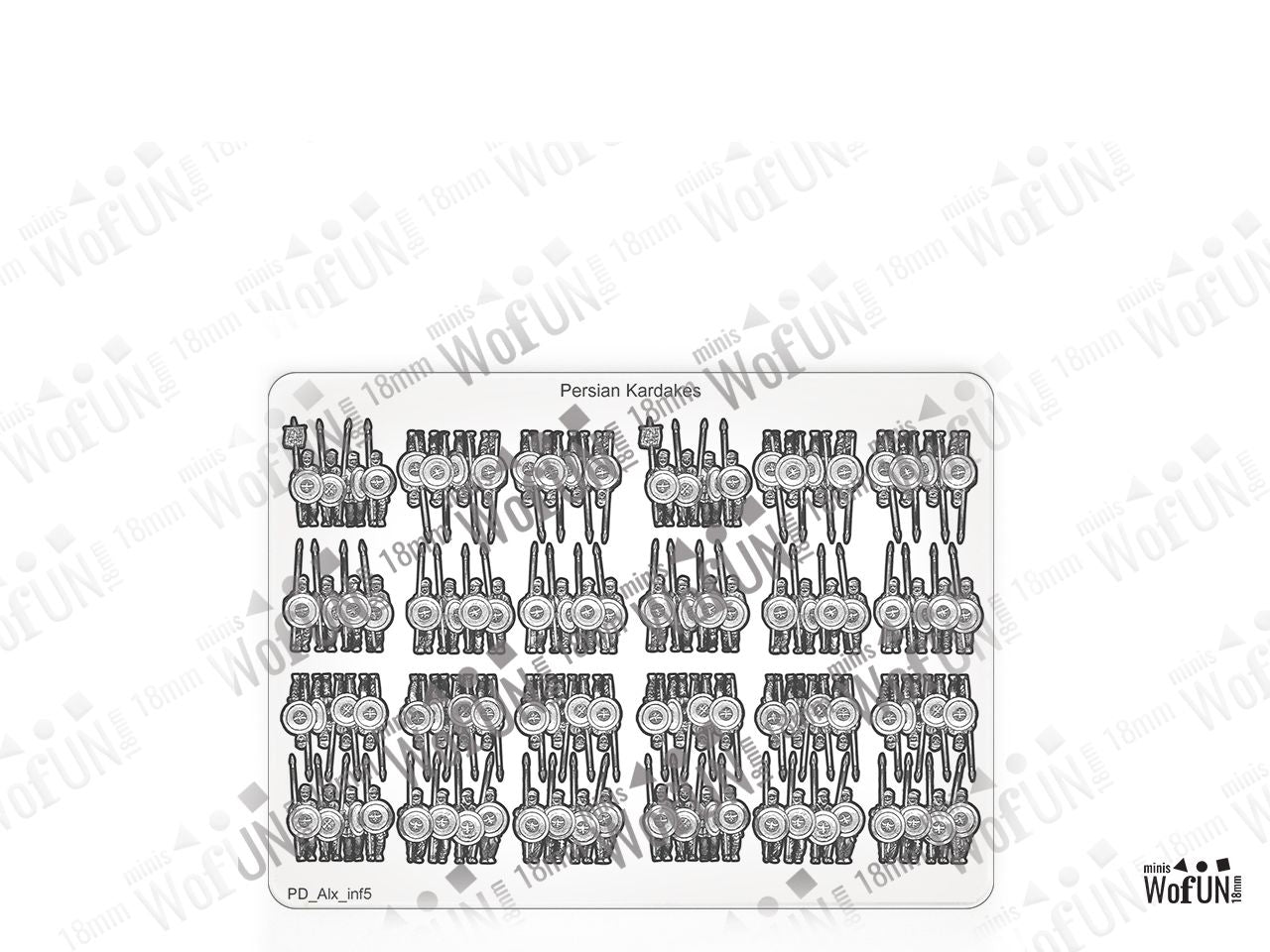 The Persian Kardakes Set is crafted on a 15x20 cm Plexiglass sprue and includes:
