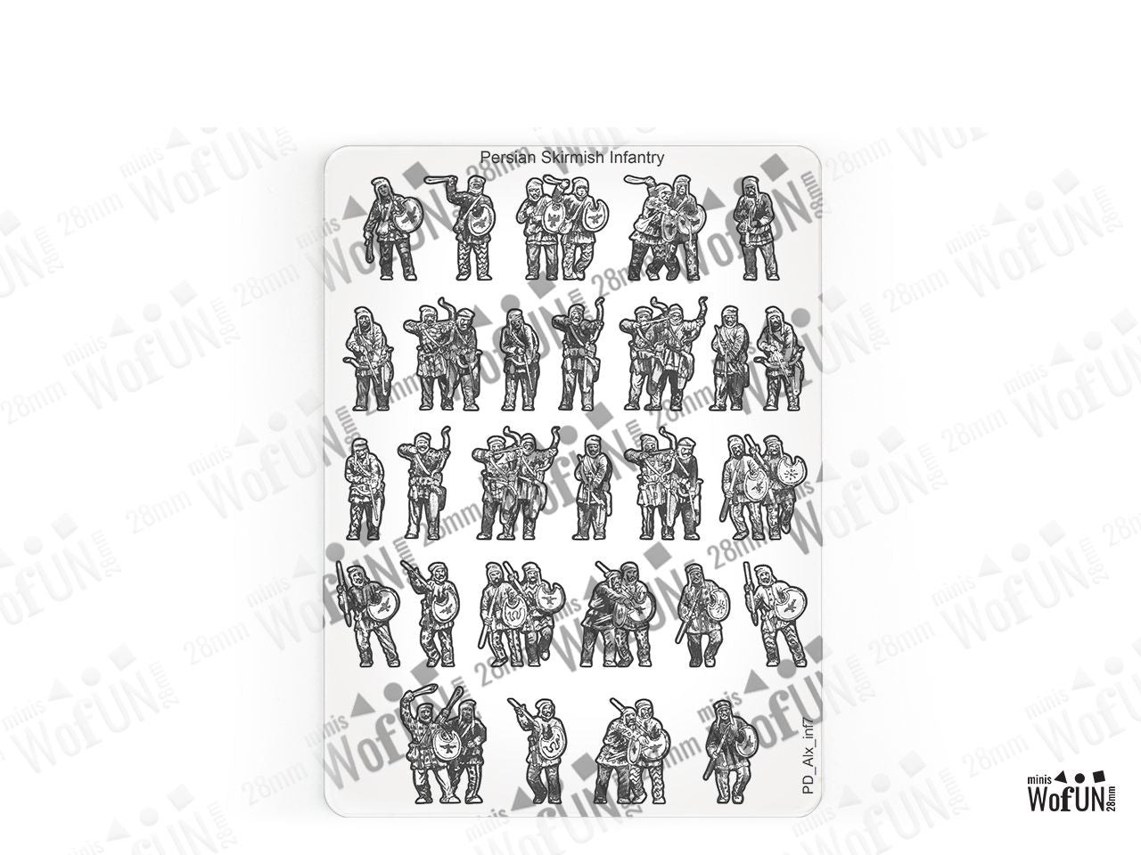 The Persian Skirmish Infantry Set is crafted on a 15x20 cm Plexiglass sprue and includes: