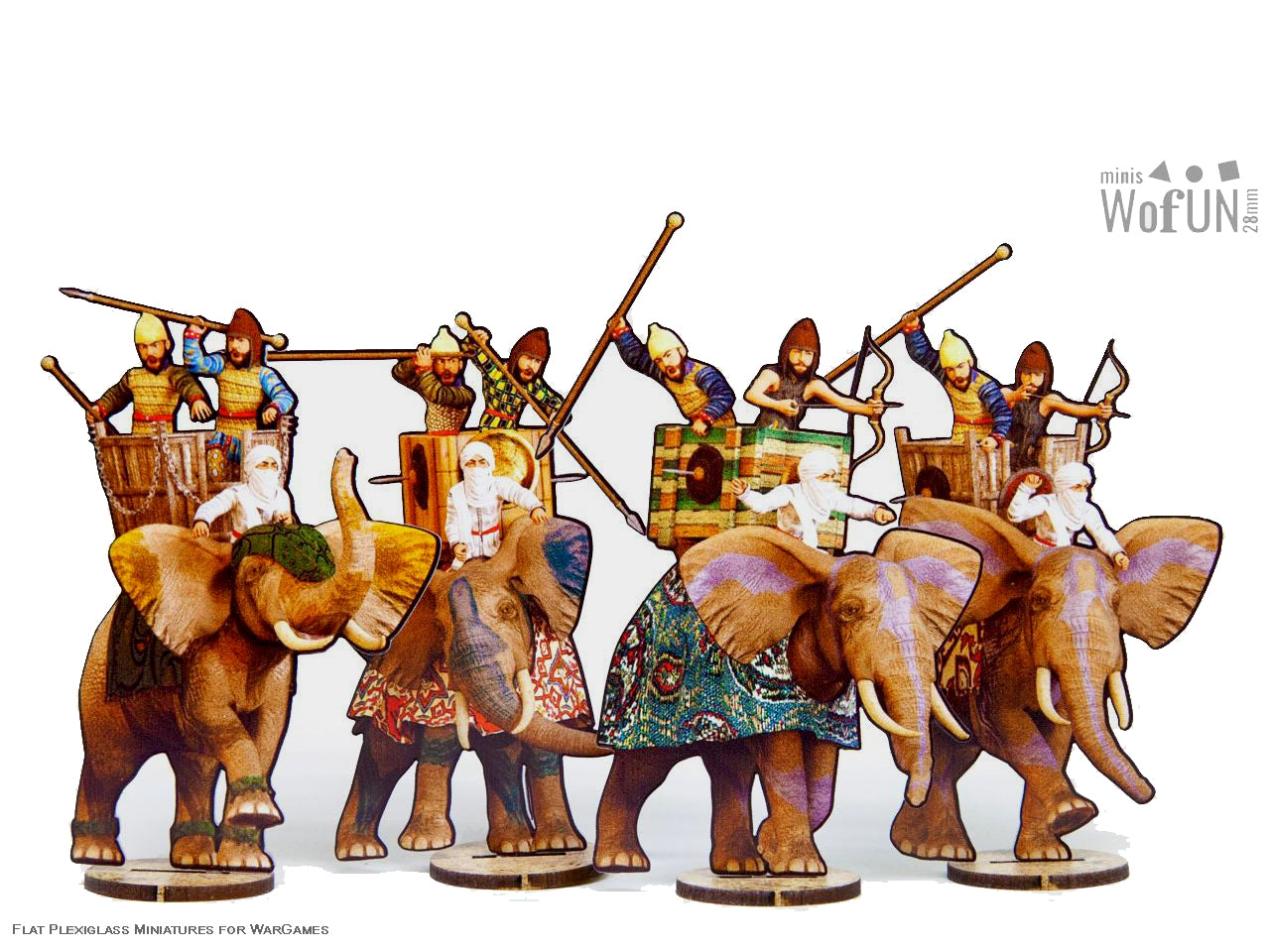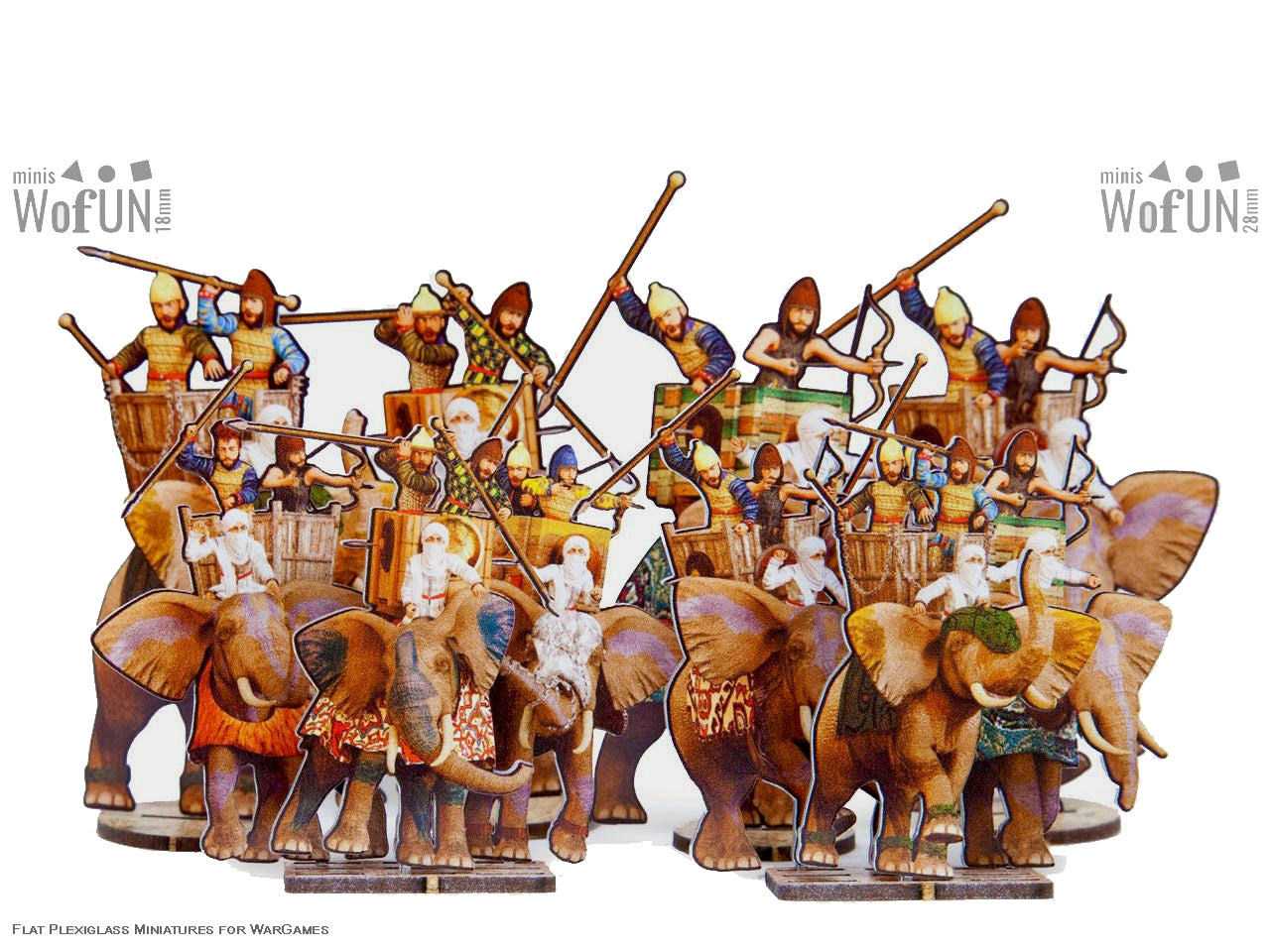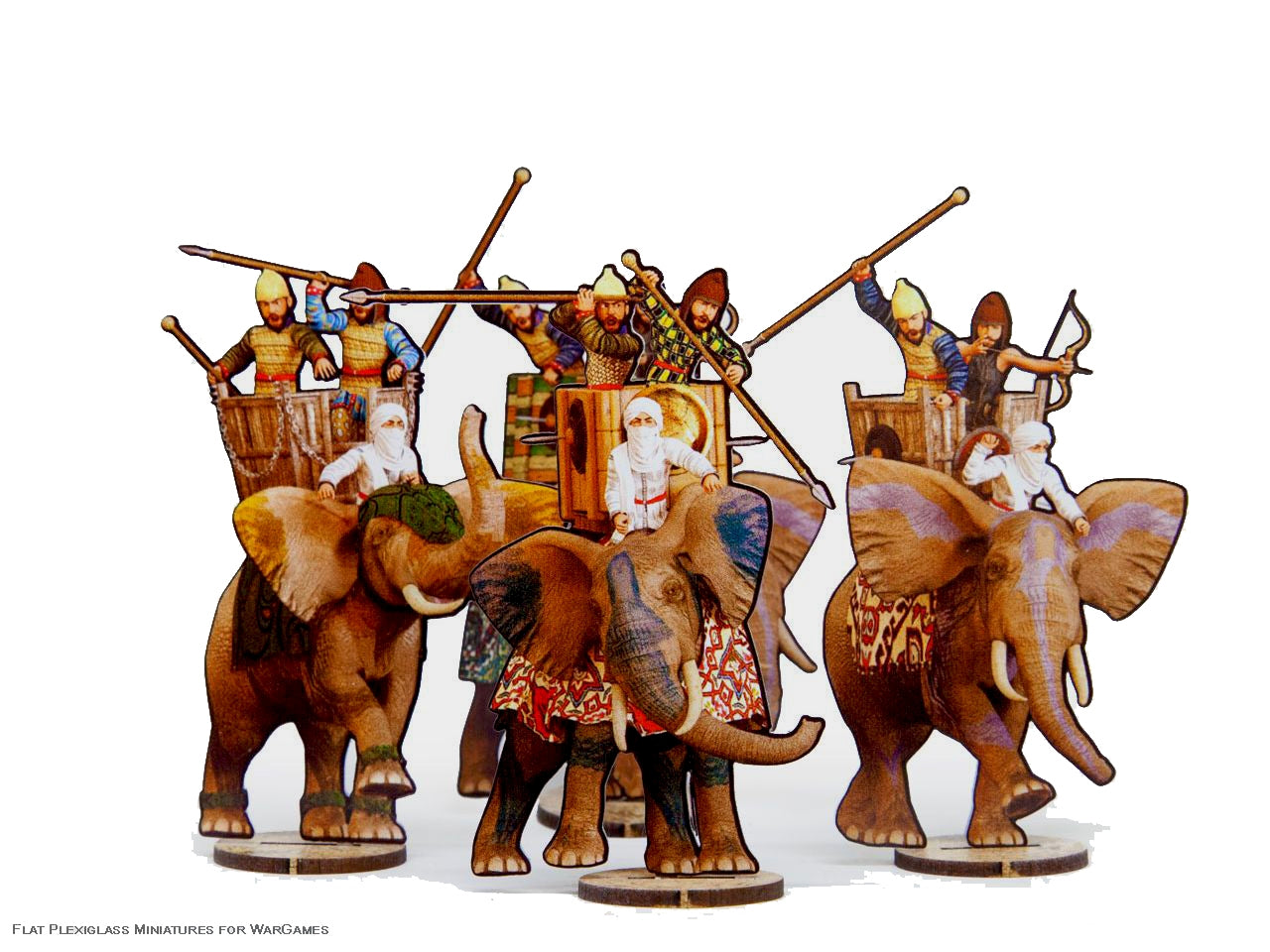 The Persian War Elephants 1 Set is crafted on a 15x20 cm Plexiglass sprue and includes: