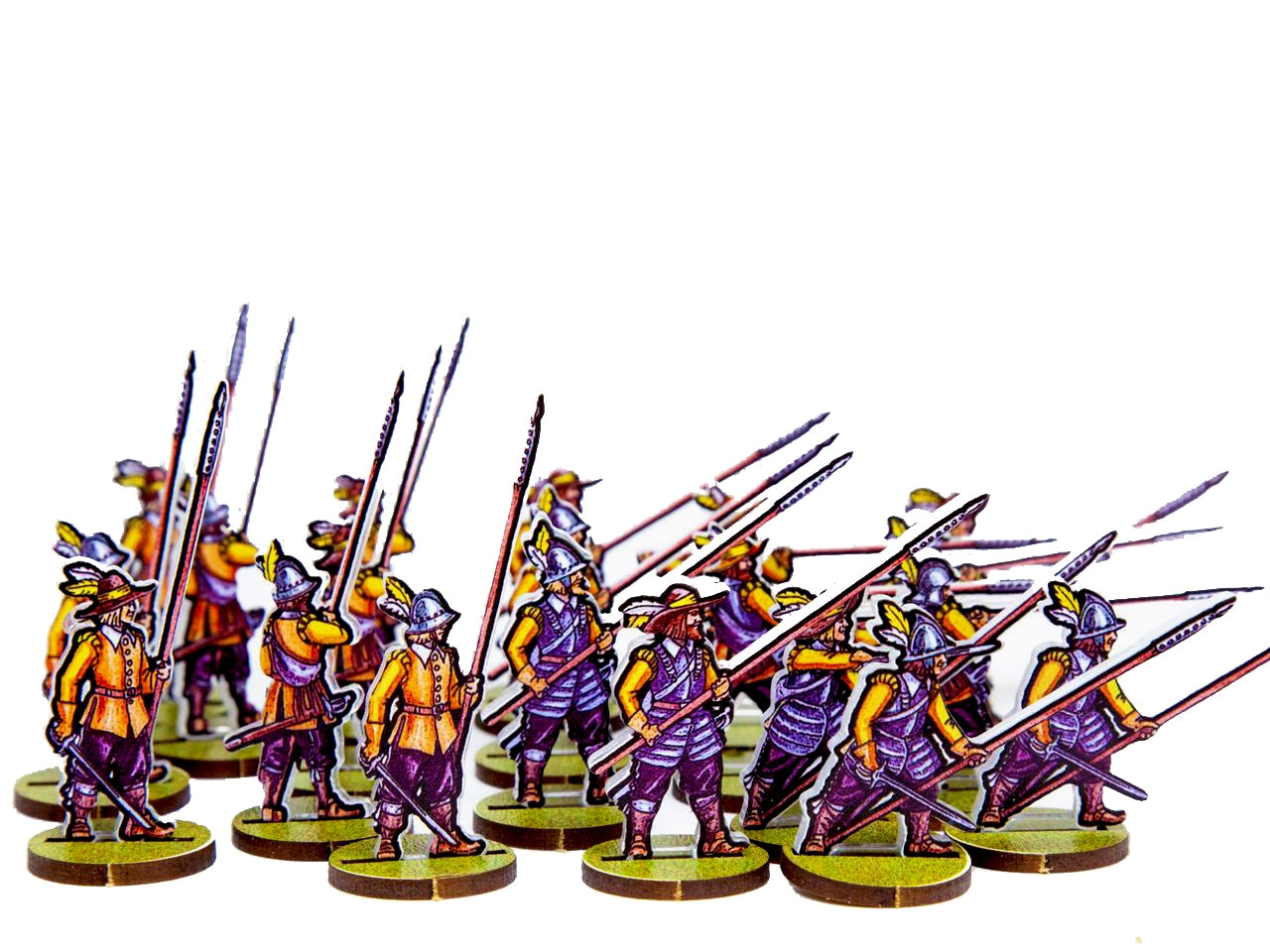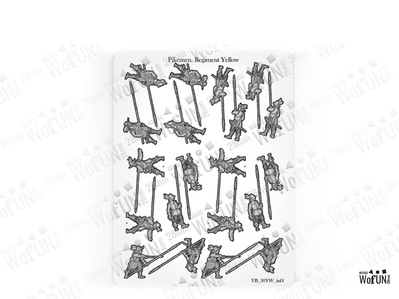 The Pikemen. Regiment Yellow Set is crafted on a 15x20 cm Plexiglass sprue and includes: