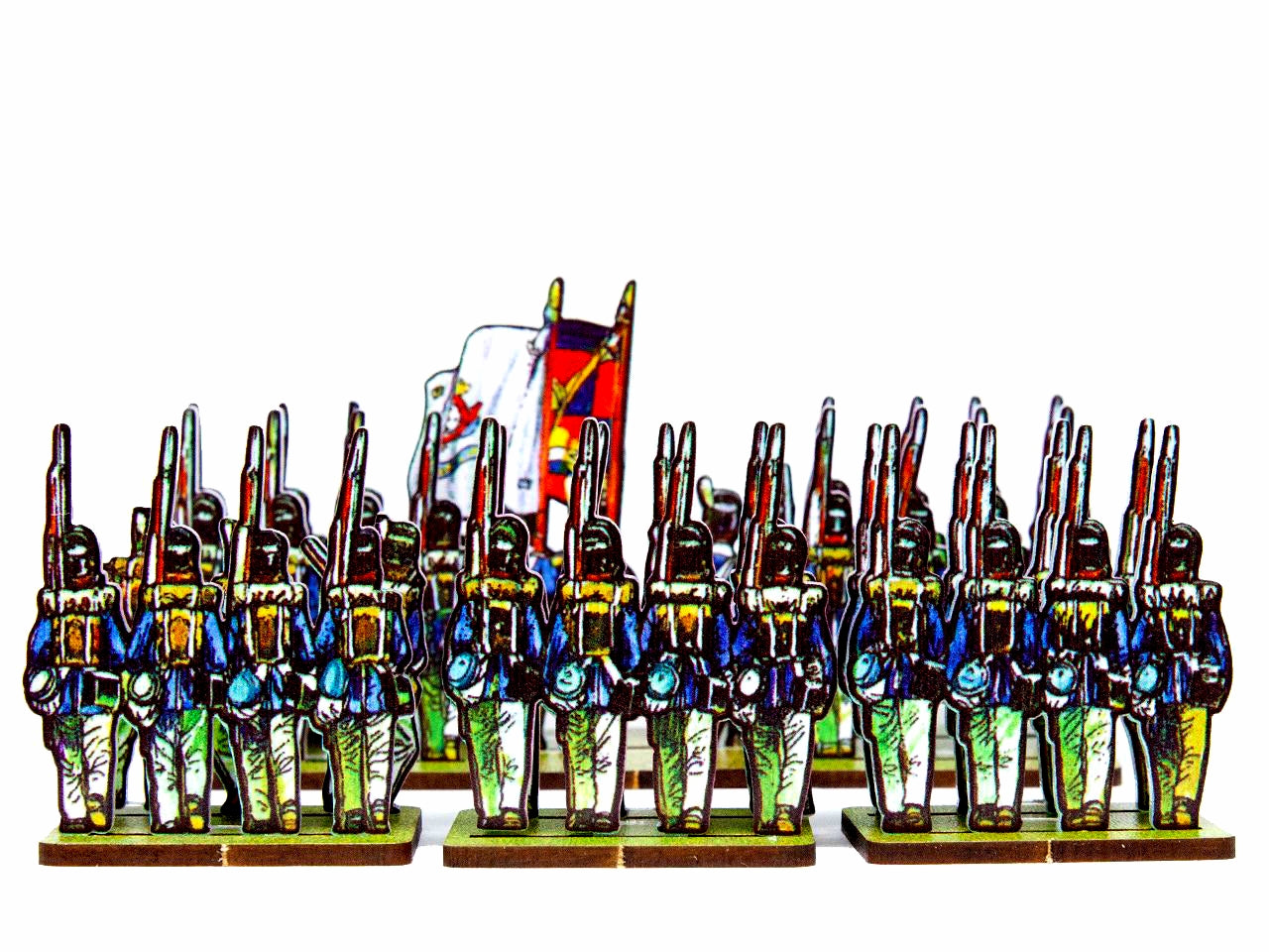 - An Infantry Base holds 2 strips of figurines, in 2 ranks (one behind the other).