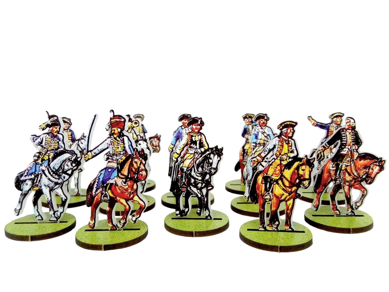 The Prussain Mounted Officers Set is crafted on a 15x20 cm Plexiglass sprue and includes:
