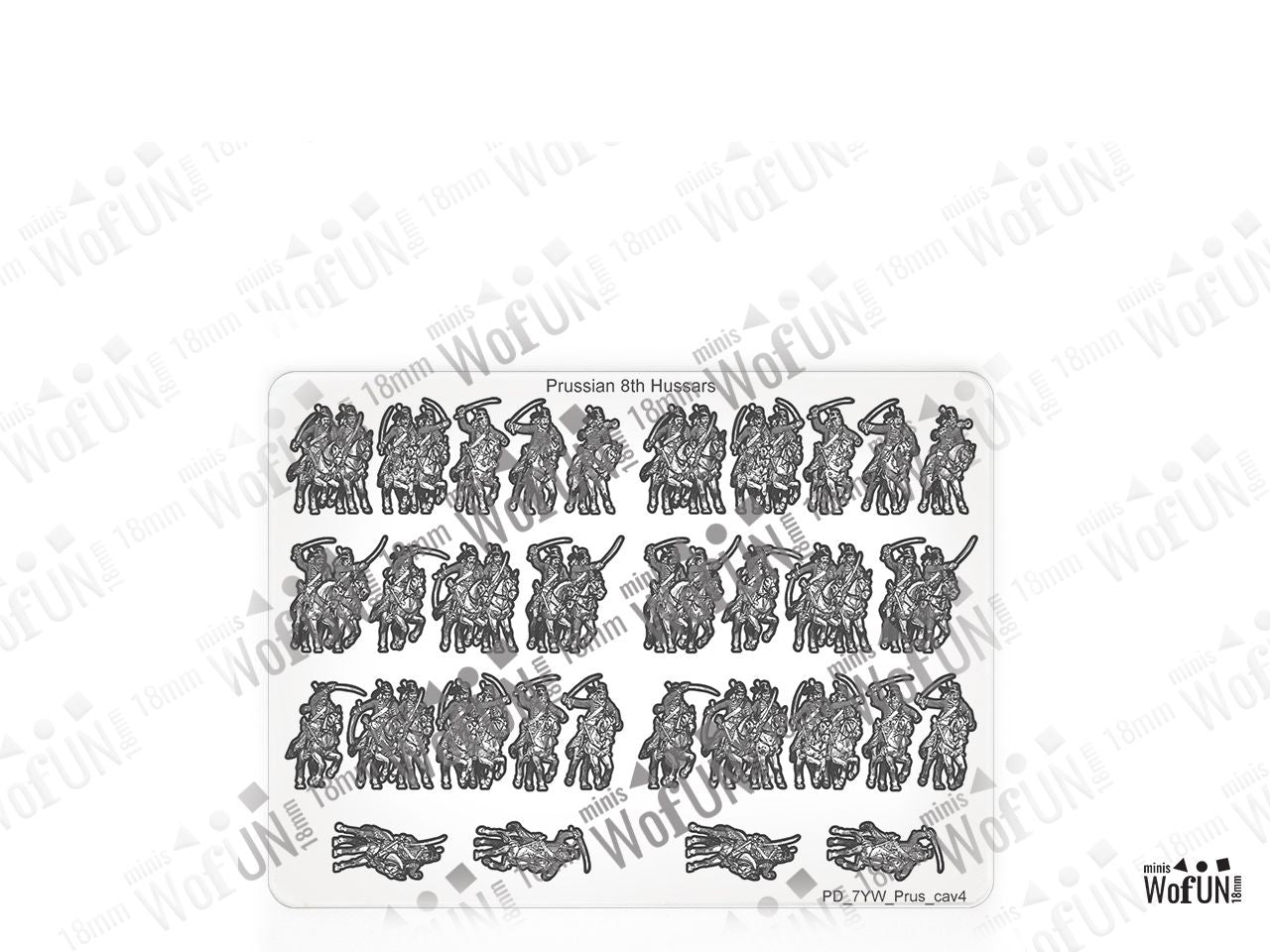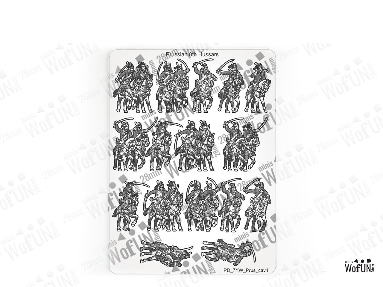 The Prussain von Seydlitz Hussars 8th Set is crafted on a 15x20 cm Plexiglass sprue and includes: