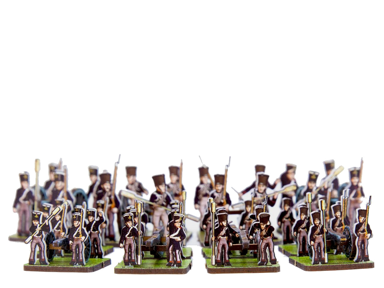 The Prussia 1815 Foot Artillery Set is crafted on a 15x20 cm Plexiglass sprue and includes: