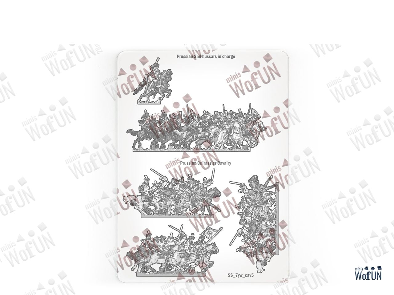 The content of the Prussian 2nd Hussars in Charge, Prussian Cuirassier Cavalry Addon is presented in the product's images.