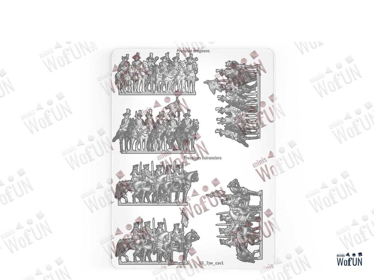 The content of the Prussian Dragoons, Prussians Cuirassiers Addon is presented in the product's images.