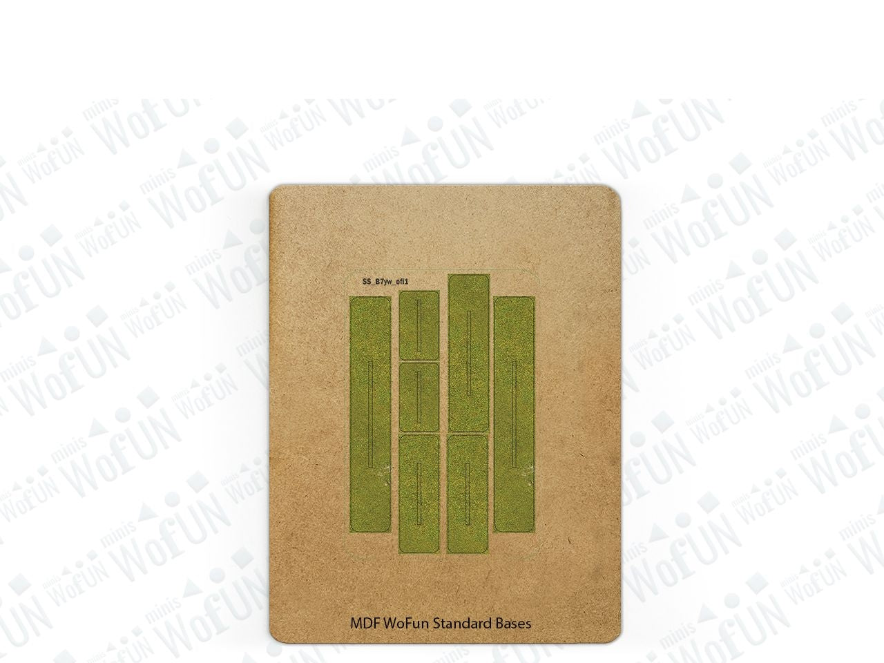 Do you offer bases with different colors/textures?Absolutely! WoFun provides custom bases with various colors and textures. Send us an email with a photo showcasing the desired texture, base size, and configuration. Keep in mind that the texture/color you see on screen might slightly differ from the actual nuance seen on the MDF sprue.