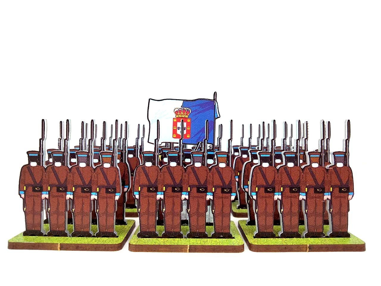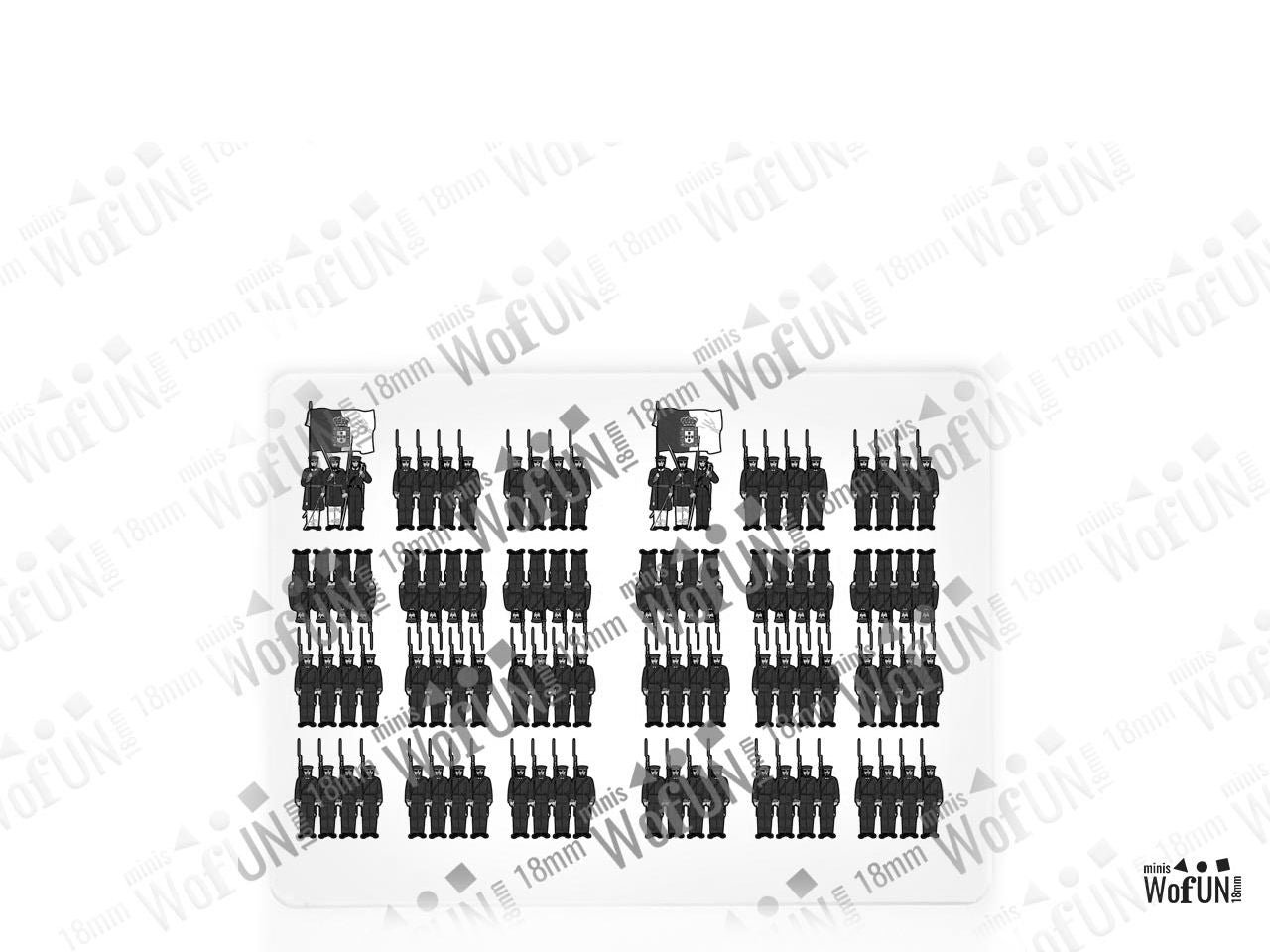 - An Infantry Base holds 2 strips of figurines, in 2 ranks (one behind the other).